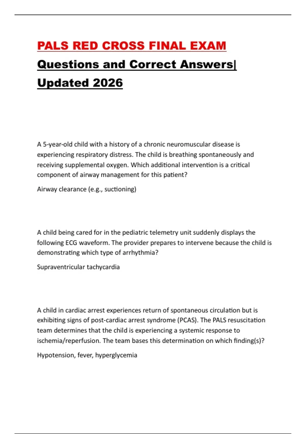 exhibiting signs of post-cardiac arrest syndrome (PCAS). The PALS resuscitation
