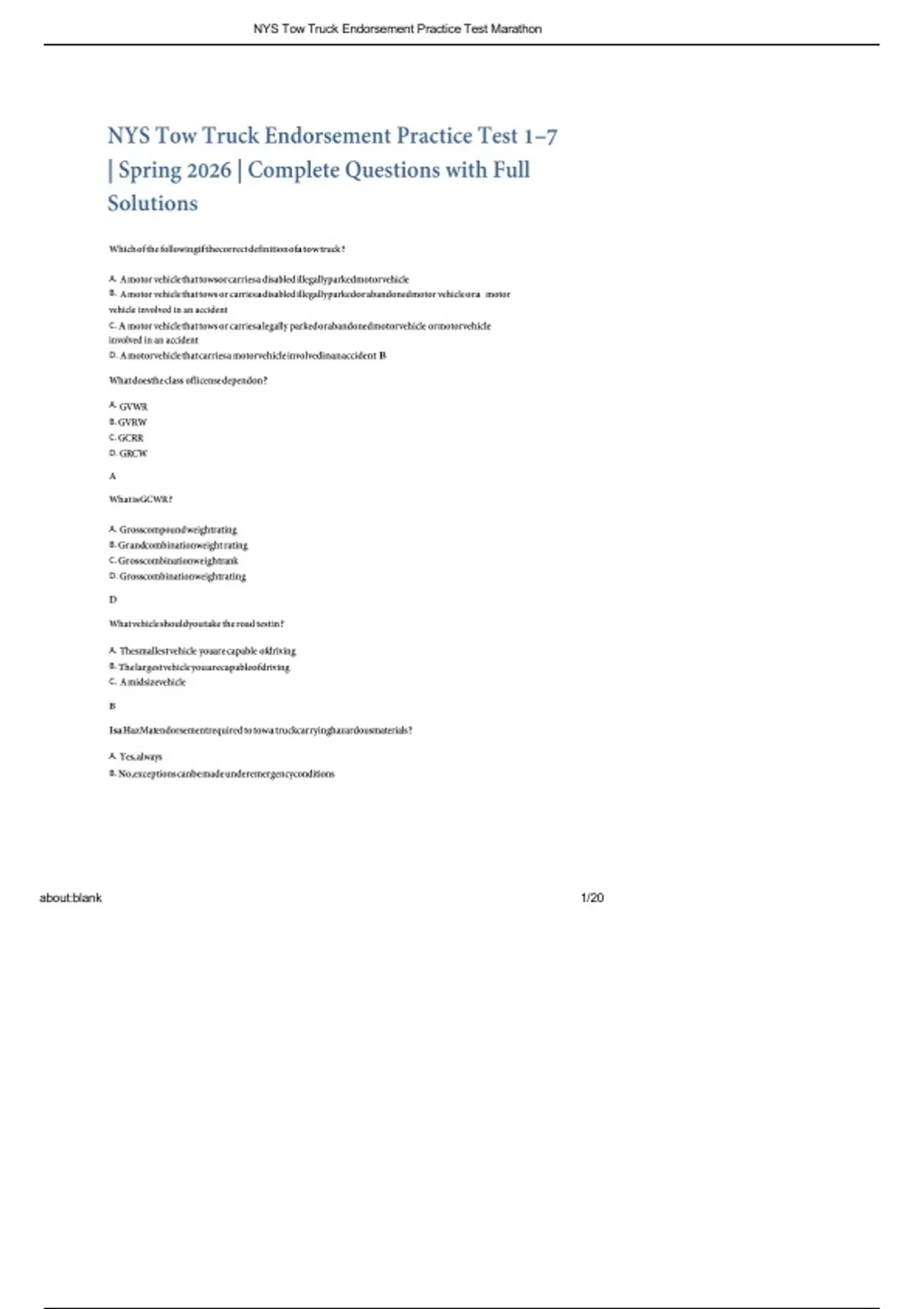 , NYS Tow Truck Endorsement Practice Test Marathon