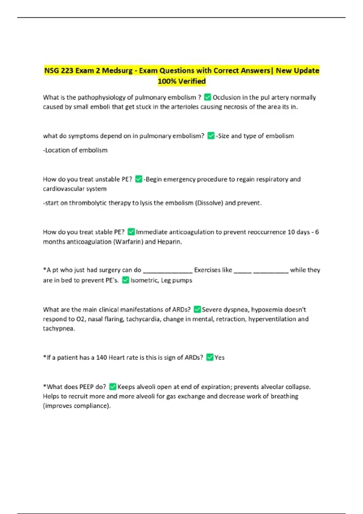 NSG 223 Exam 2 Medsurg - Exam Questions with Correct Answers| New Update 100% Verified