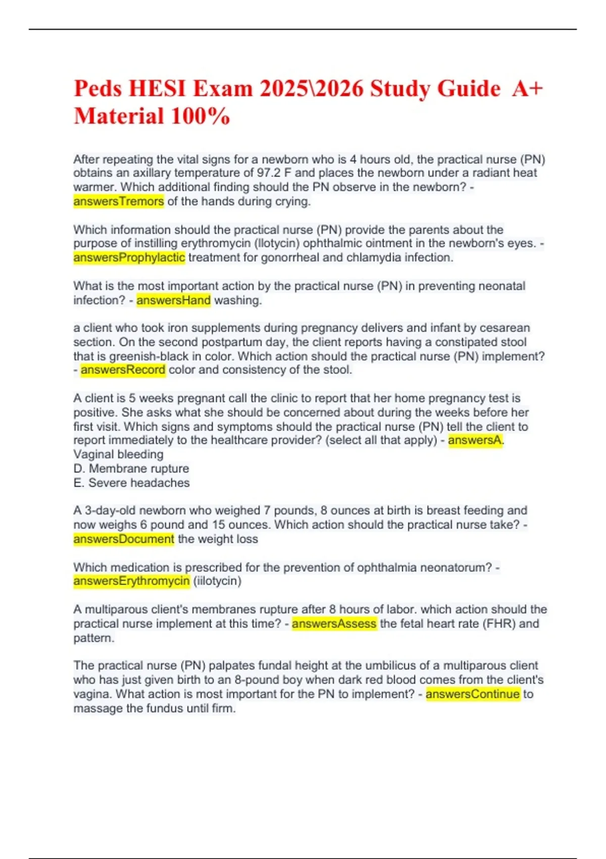 Peds HESI Exam 2025\2026 Study Guide A+