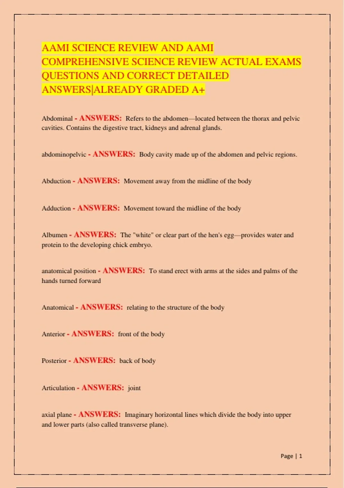 Anterior - ANSWERS: front of the body
