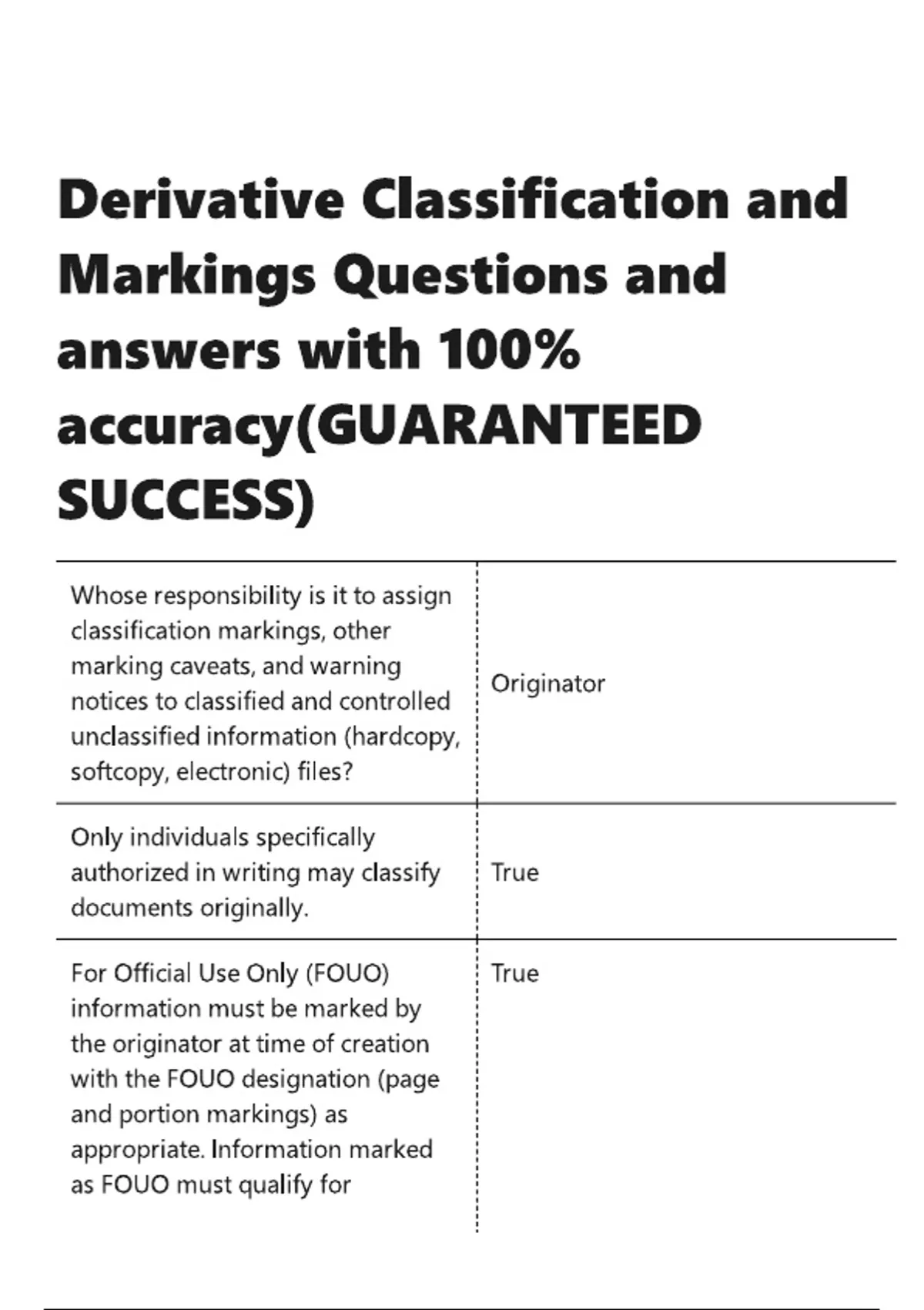 Derivative Classification and Markings Questions and answers with 100- accuracy