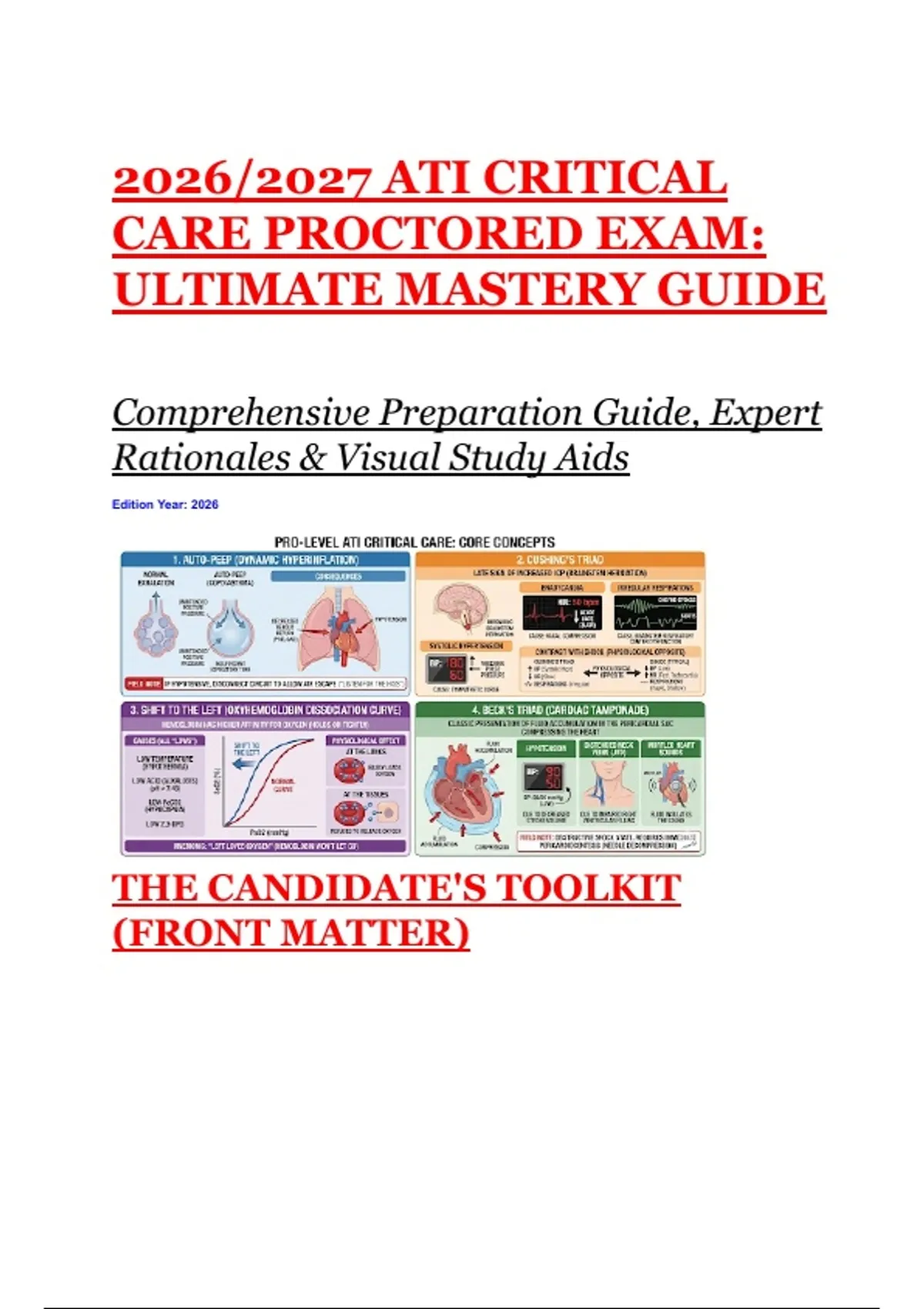 ARE YOU STRUGGLING WITH THE COMPLEXITIES OF CRITICAL CARE FOR YOUR ATI EXAM? Stop drowning in textbooks and focus on what actually matters for the ATI Critical Care Proctored Exam. This "Pro-Level" study guide is designed to break down the most difficult, high-stakes concepts into clear, actionable summaries. This is not a basic overview. This guide focuses on the pathophysiology, critical interventions, and specific "field notes" that yield the highest points on the exam. It is designed to help you understand the why behind the interventions, ensuring you can answer NCLEX-style application questions. This high-yield guide expertly simplifies and covers critical topics including: Complex Respiratory Concepts: Deep dives into Auto-PEEP (Dynamic Hyperinflation)—mechanisms, consequences, and the immediate "disconnect circuit" intervention. ARDS & Refractory Hypoxemia: Understanding intrapulmonary shunting and why PEEP is the priority treatment over just high FiO2. Critical Triads & Mnemonics: Master Cushing’s Triad (increased ICP late signs) vs. Shock, and Beck’s Triad (Cardiac Tamponade). Oxyhemoglobin Dissociation Curve: Simplified explanation of the "Shift to the Left," causes, and physiological effects ("Left Loves Oxygen"). Cardiovascular Hemodynamics: Interpretation of CVP, PAOP, SVR, and MAP, alongside differentiating Shock States (Cardiogenic, Hypovolemic, Septic, Neurogenic). ACLS & Dysrhythmias: Management of lethal rhythms and AV blocks. Mechanical Ventilation: Essential modes, weaning protocols, and troubleshooting alarms. Perfect for: Nursing students in critical care rotations, students preparing for the ATI Proctored Critical Care Exam, and new grads entering the ICU looking for a solid concept refresher. Download today and master the complexities of critical care nursing!