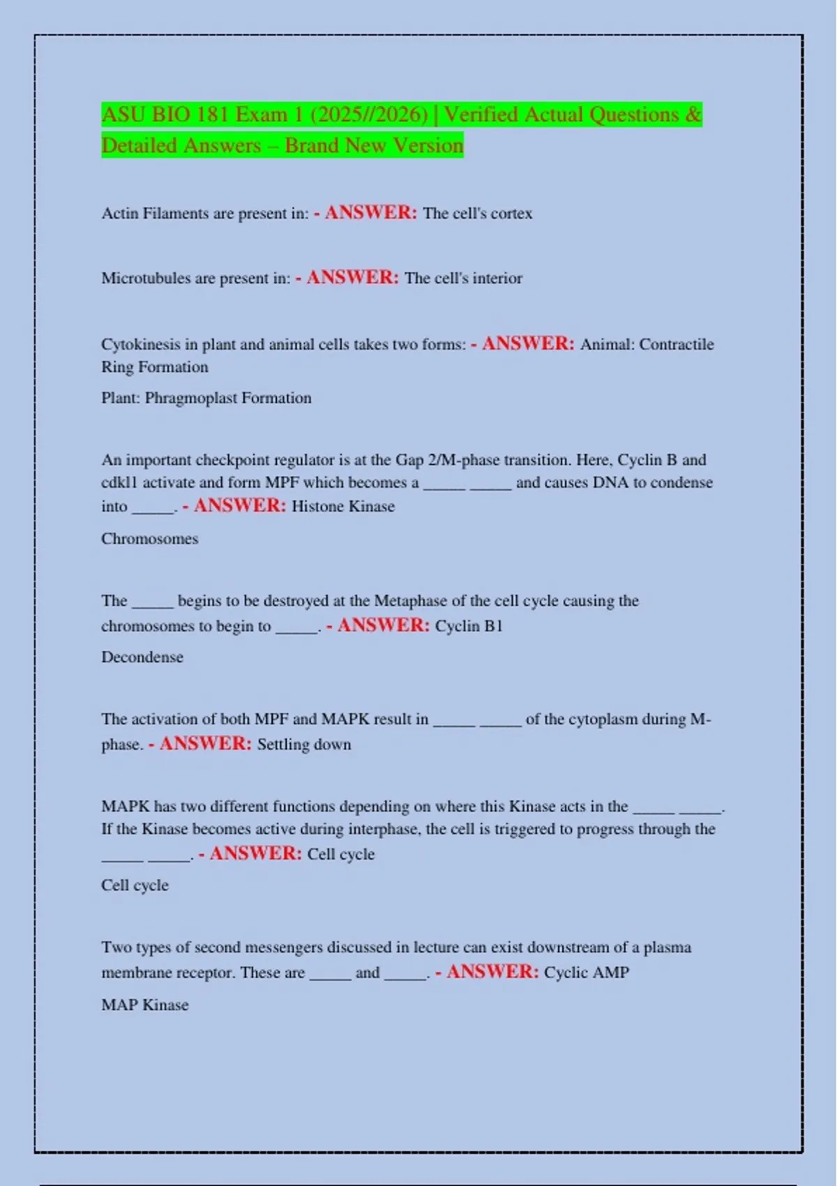 ASU BIO 181 Exam 1 (2025//2026) | Verified Actual Questions &