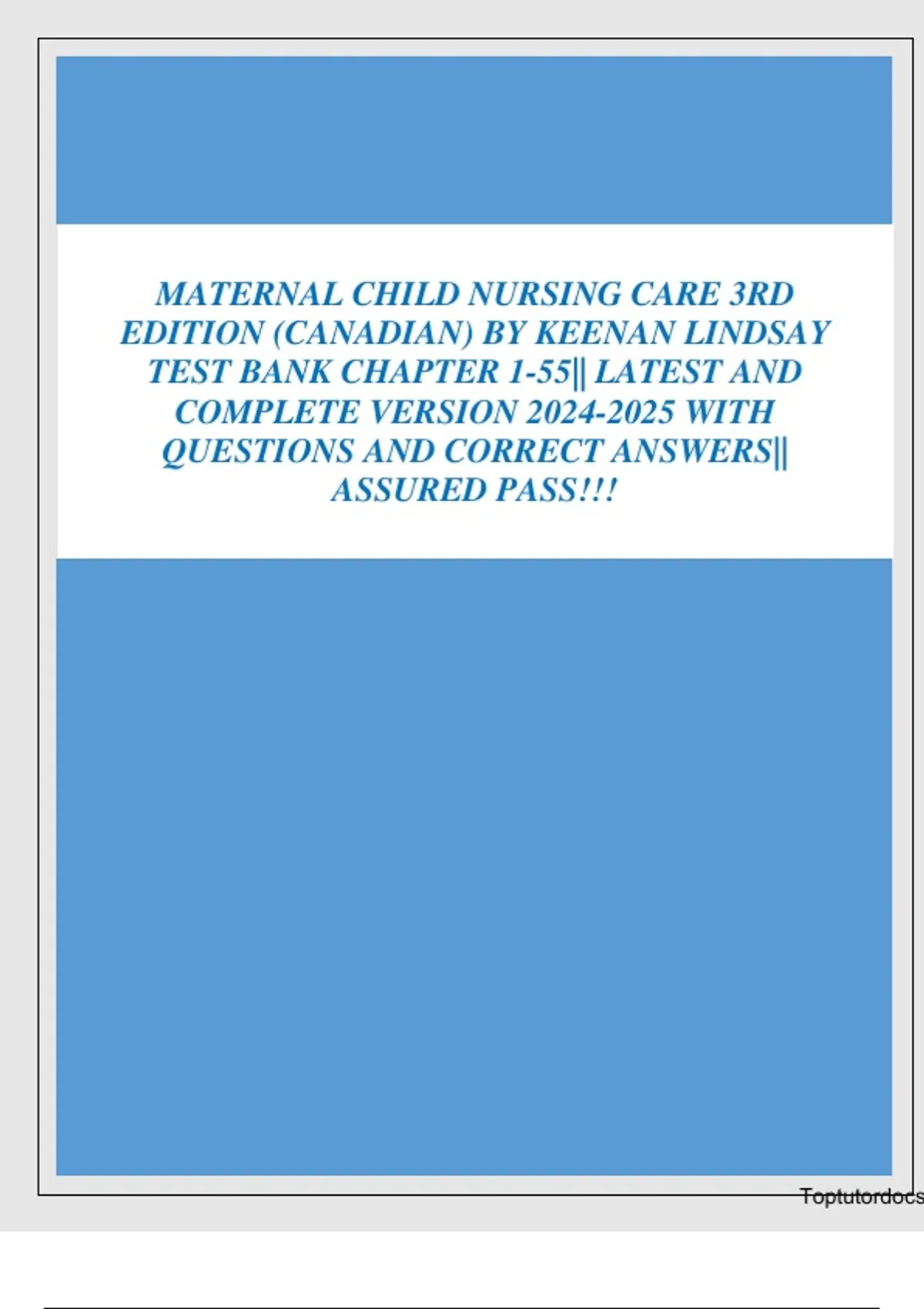 TEST BANK For Maternal Child Nursing Care 3rd Canadian Edition By Keenan Lindsay,COMPLETE GUIDES THAT GUARANTEES A+,