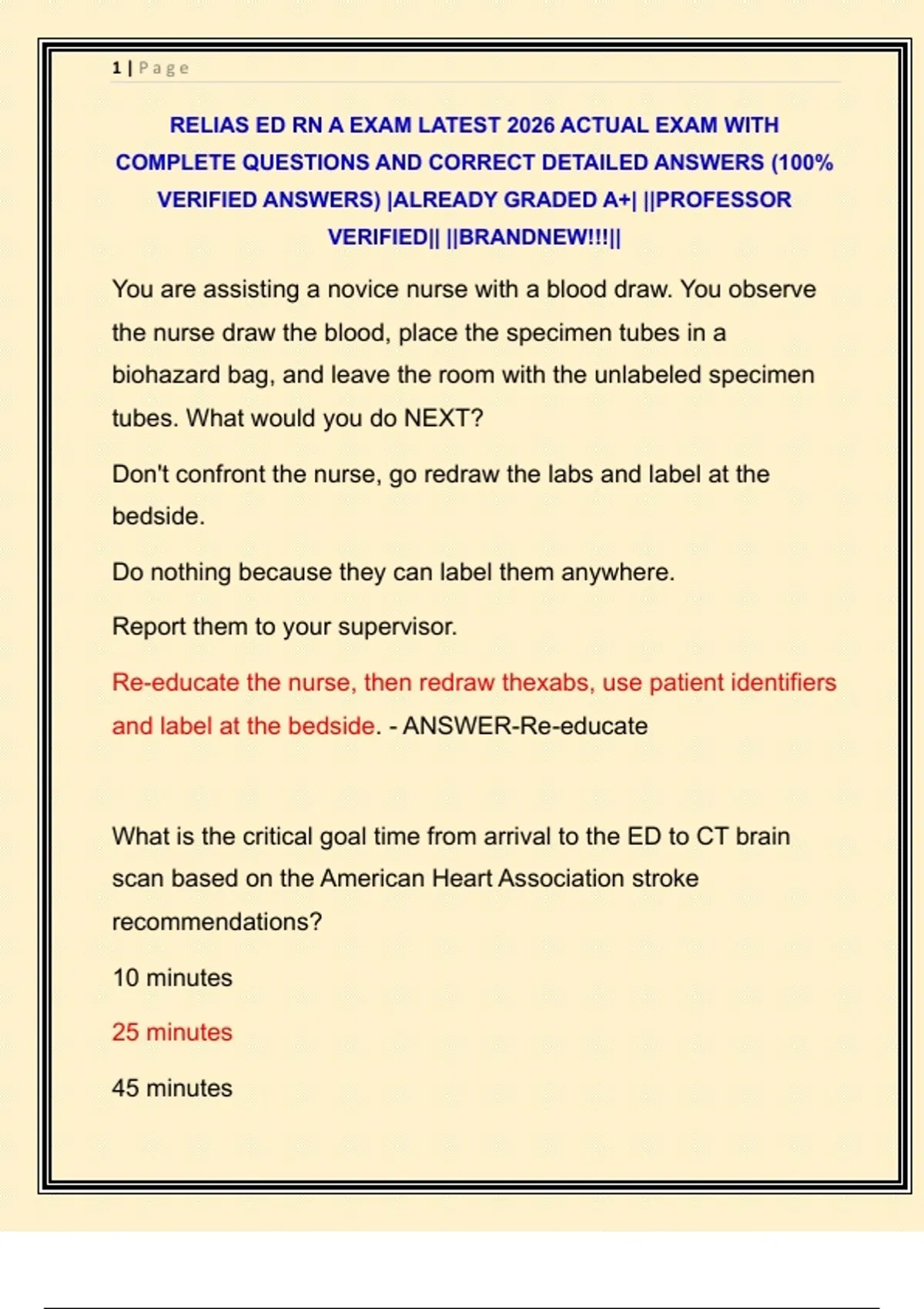 RELIAS ED RN A EXAM LATEST 2026 ACTUAL EXAM WITH COMPLETE QUESTIONS AND CORRECT DETAILED ANSWERS (100% VERIFIED ANSWERS) |ALREADY GRADED A+| ||PROFESSOR VERIFIED|| ||BRANDNEW!!!||