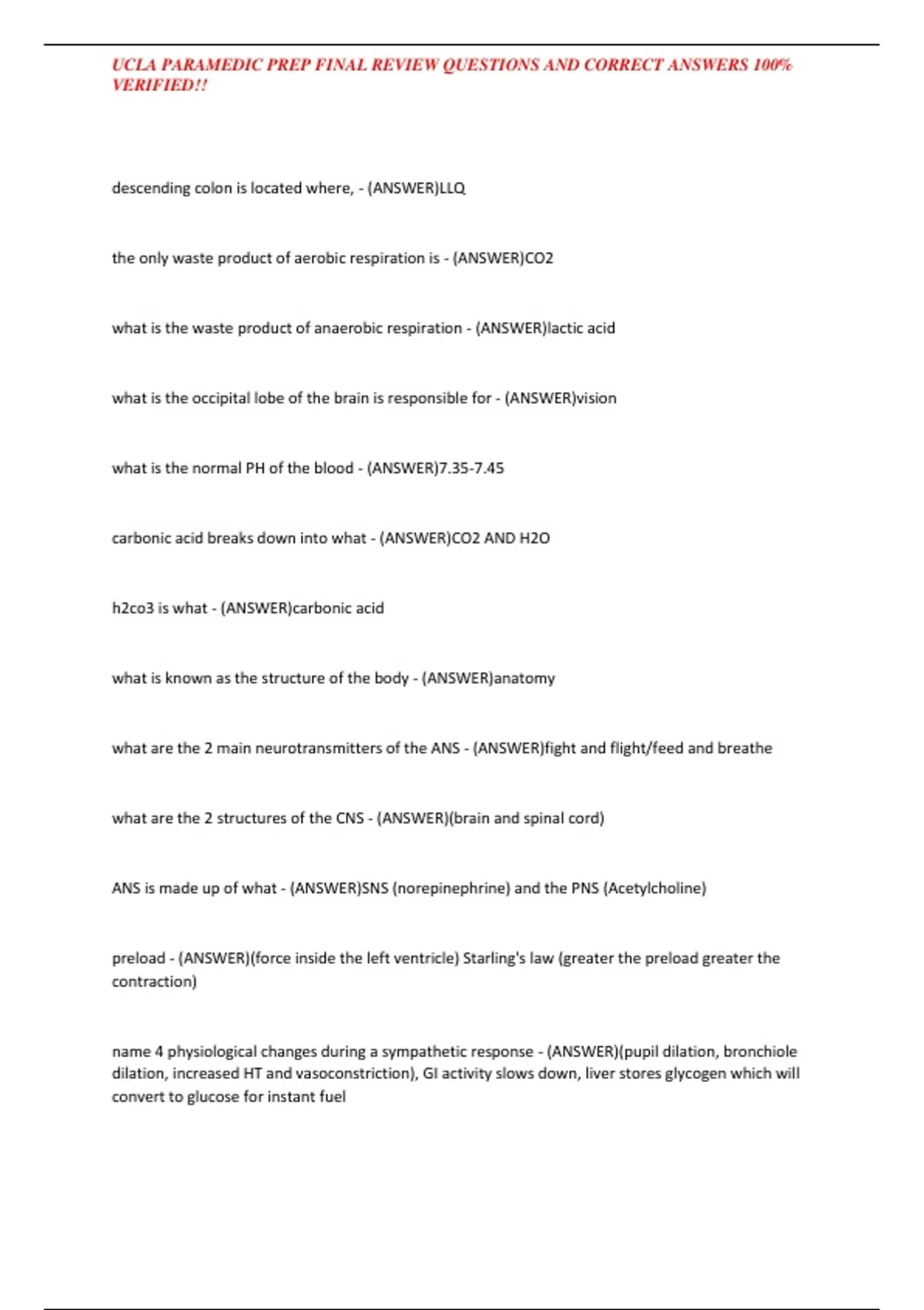 , UCLA PARAMEDIC PREP FINAL REVIEW QUESTIONS AND CORRECT ANSWERS 100%