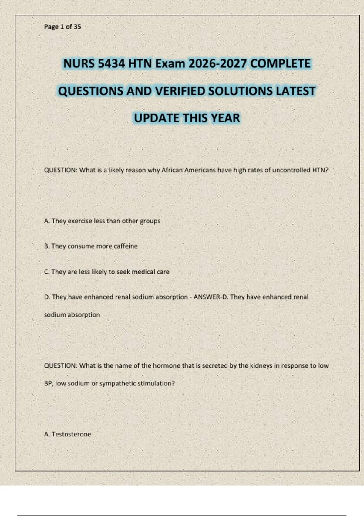 NURS 5434 HTN Exam 2026-2027 COMPLETE