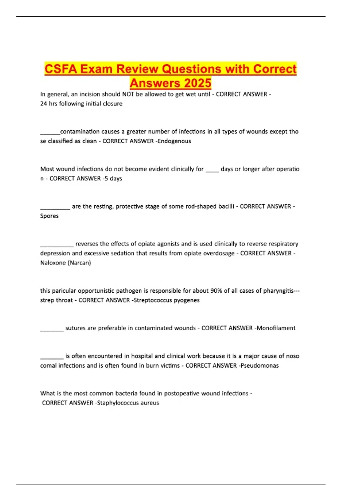 CSFA Exam Review Questions with Correct Answers
