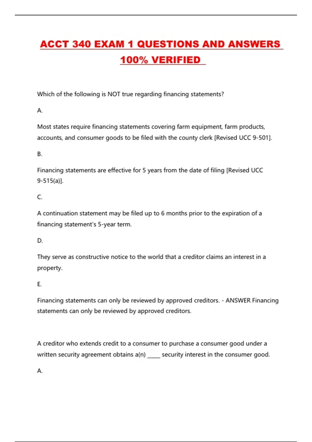 ACCT 340 EXAM 1 QUESTIONS AND ANSWERS