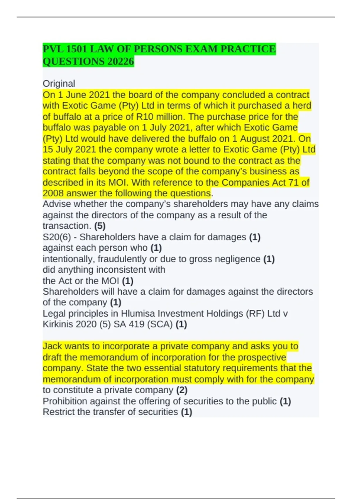 PVL 1501 LAW OF PERSONS EXAM PRACTICE QUESTIONS 20226PVL 1501 LAW OF PERSONS EXAM PRACTICE QUESTIONS 20226PVL 1501 LAW OF PERSONS EXAM PRACTICE QUESTIONS 20226
