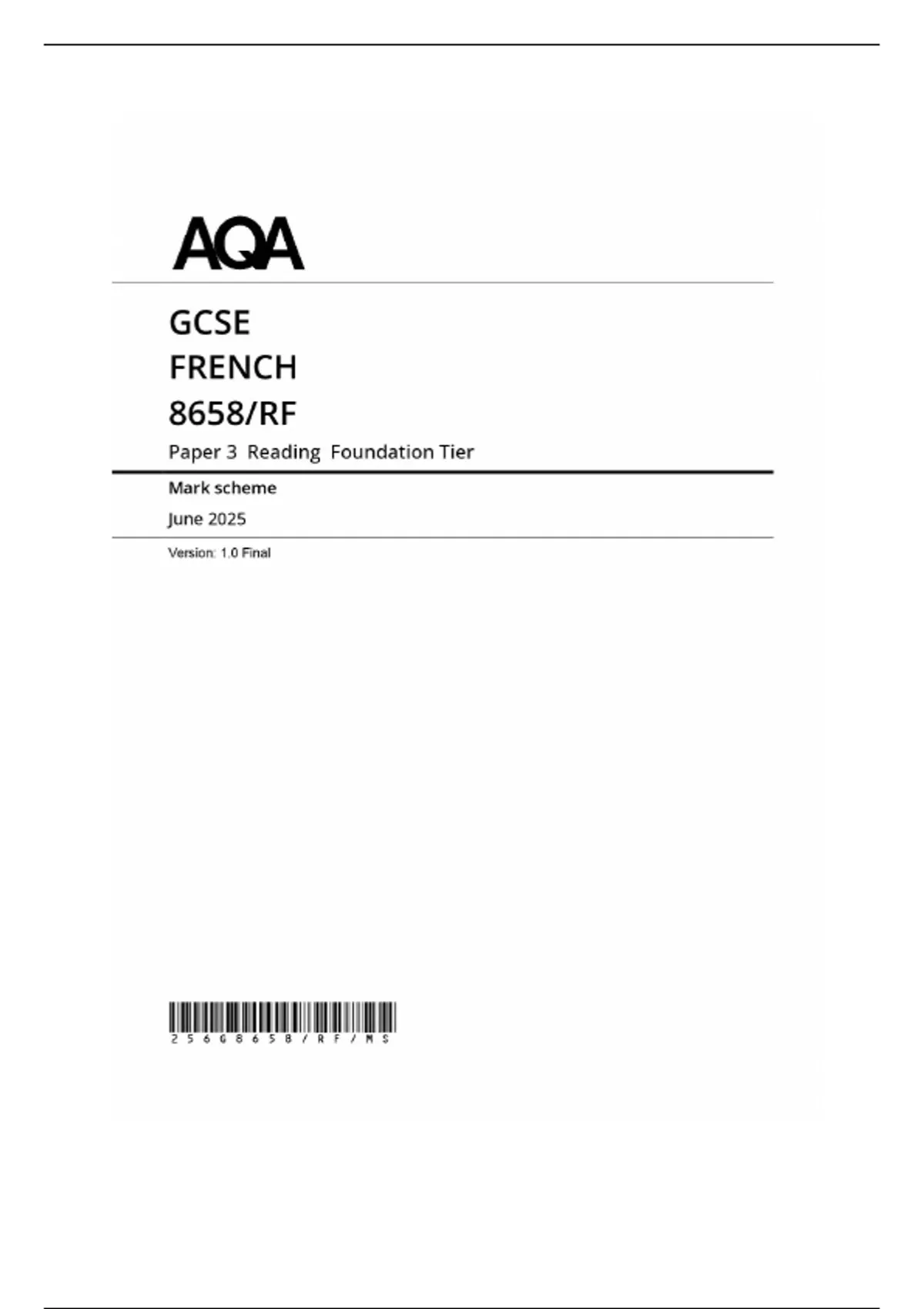 GCSE AQA French Foundation Tier Paper 3 Reading 2025 – Mark Scheme & Revision Guide