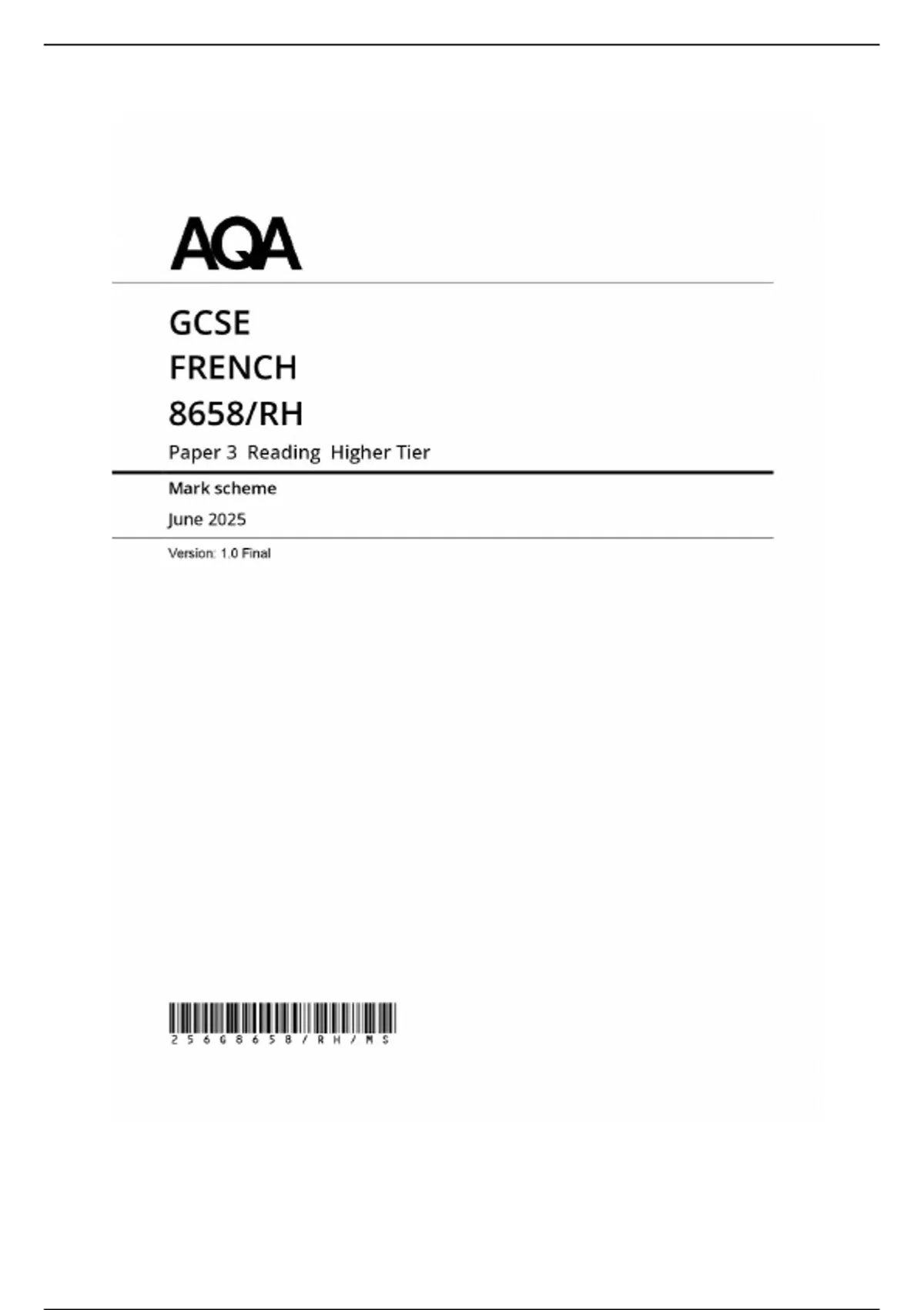 GCSE AQA French Higher Tier Paper 3 Reading 2025 – Mark Scheme & Revision Guide