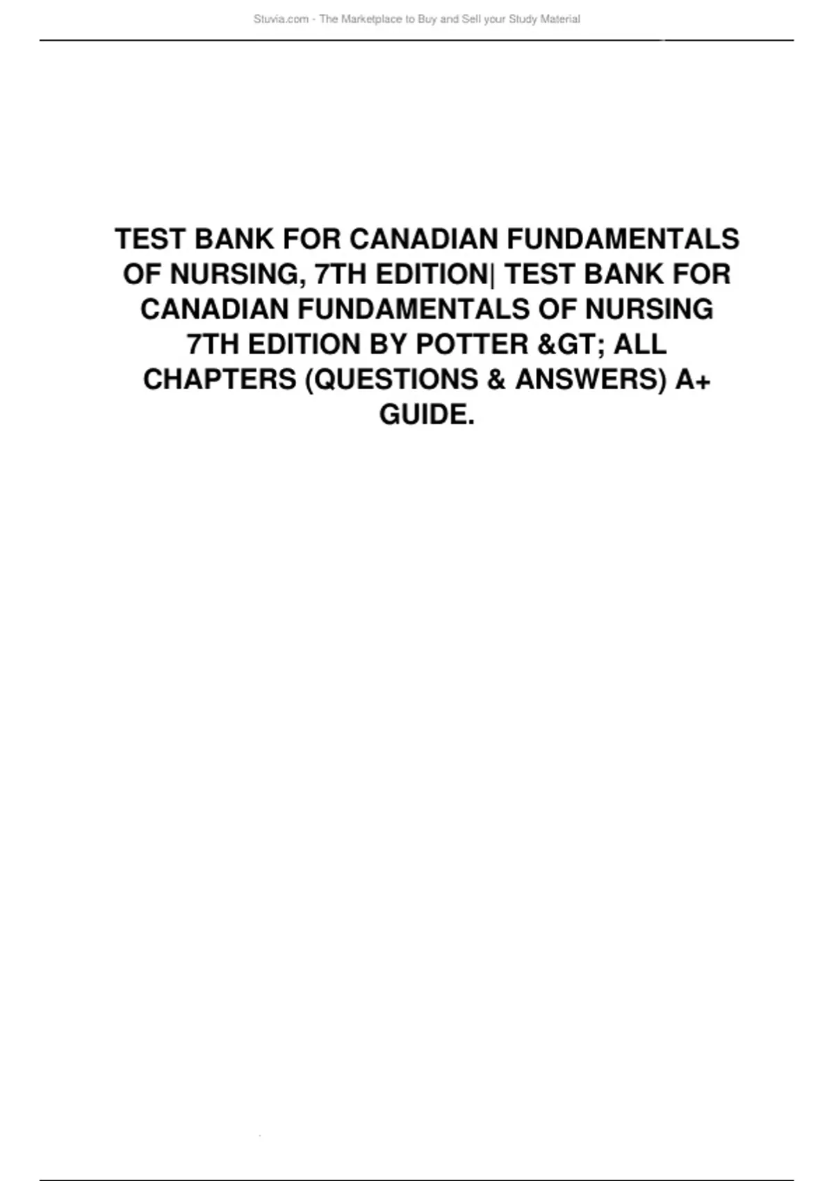 Test Bank for Canadian Fundamentals of Nursing 7th
