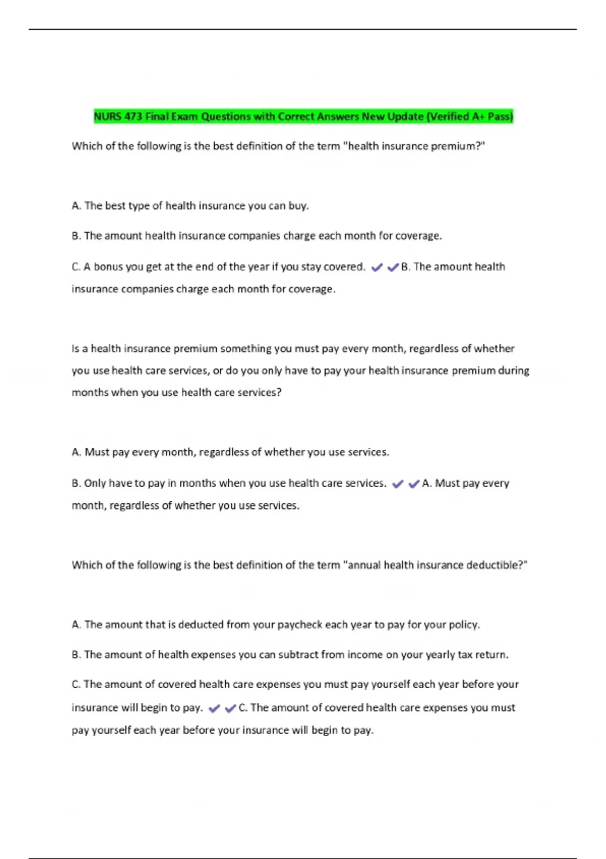 nurs 473 final exam questions with correct answers