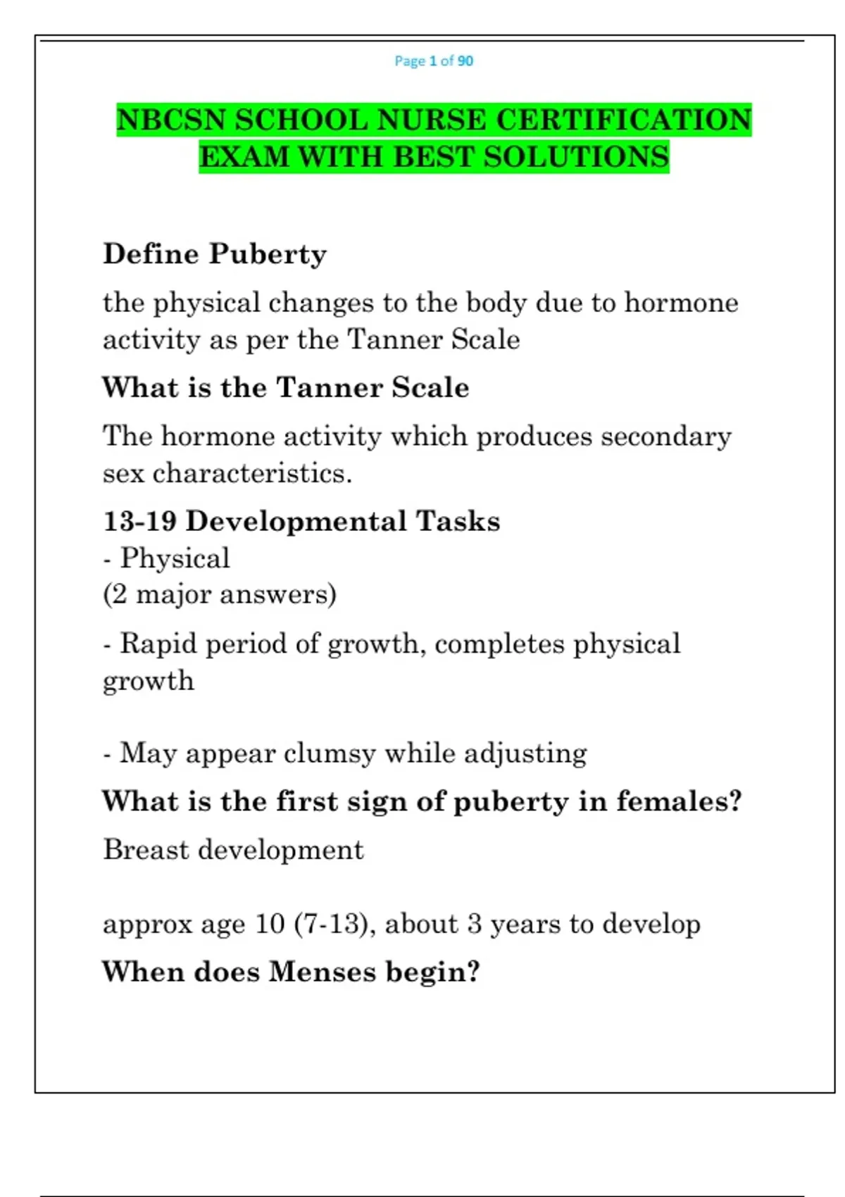 NBCSN SCHOOL NURSE CERTIFICATION EXAM WITH BEST SOLUTIONS