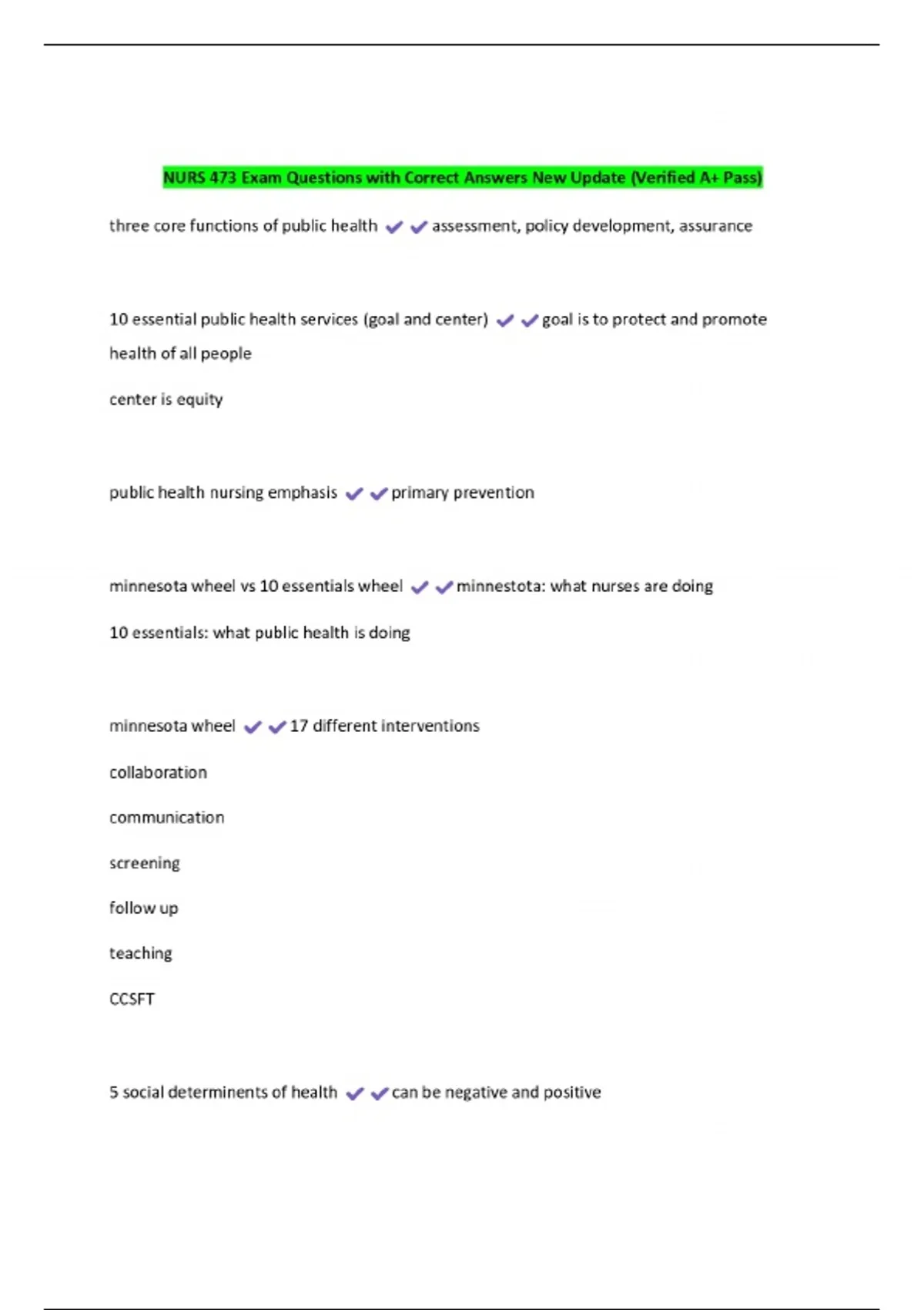 NURS 473 Exam Questions with Correct Answers New Update (Verified A+ Pass)
