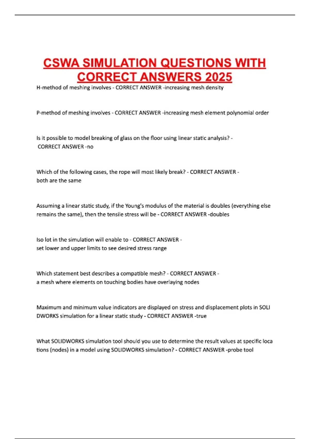 CSWA SIMULATION QUESTIONS WITH CORRECT ANSWERS