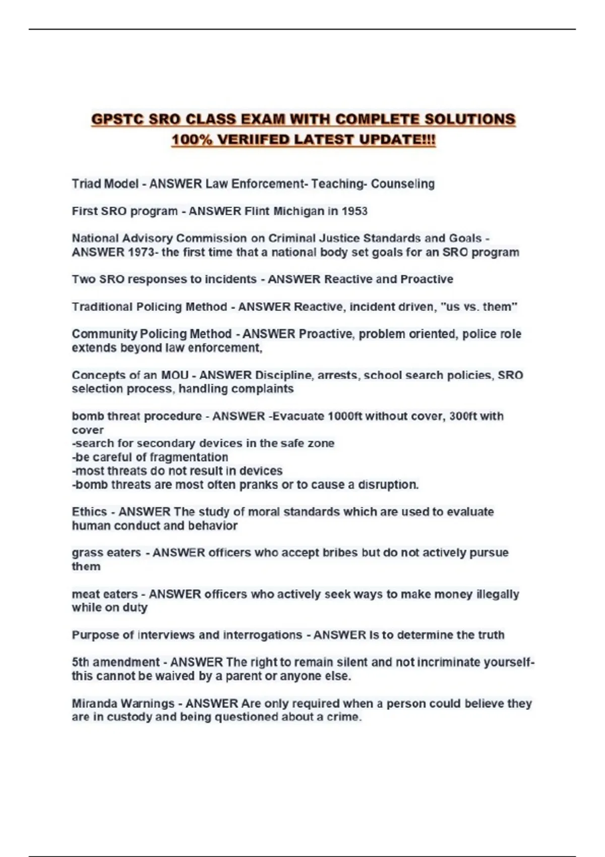 GPSTC SRO CLASS EXAM WITH COMPLETE SOLUTIONS 100% VERIIFED LATEST UPDATE!!!...