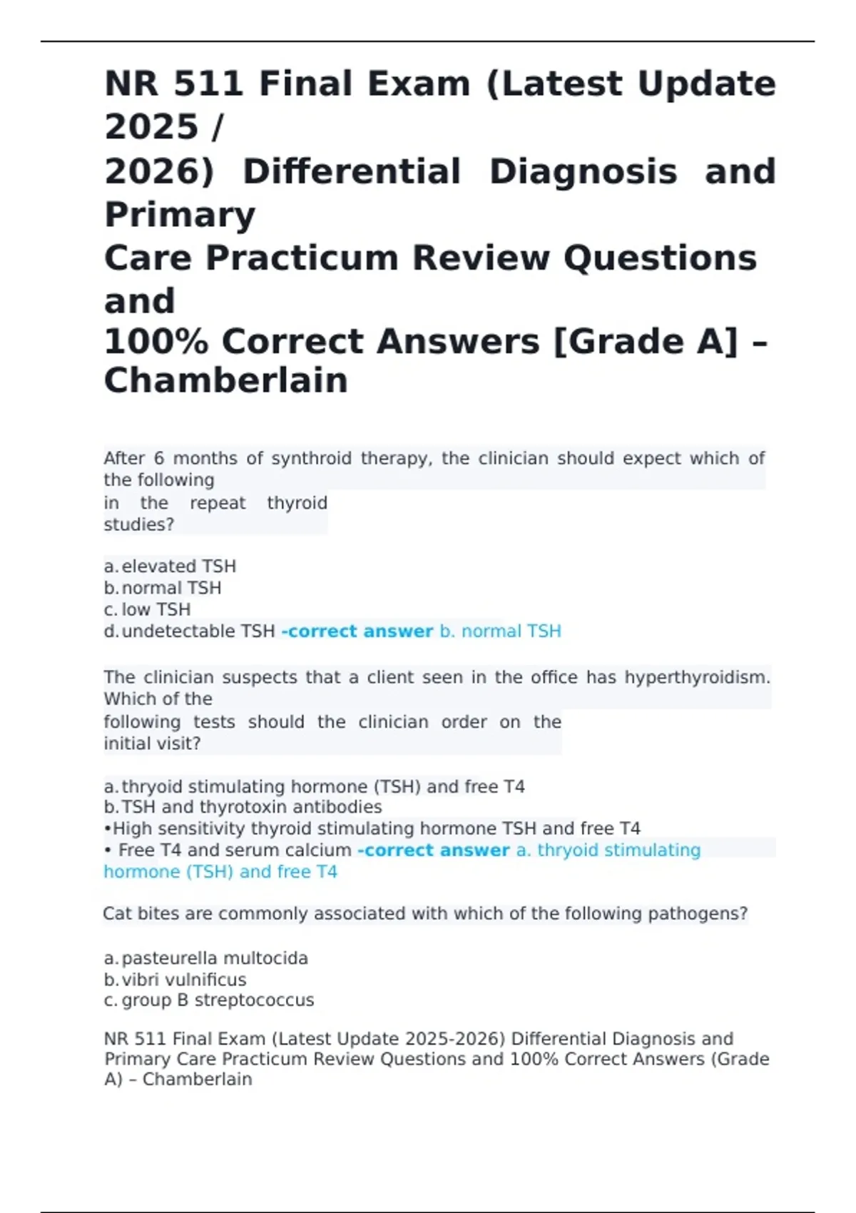 NR 511 Final Exam (Latest Update 2025-2026) Differential Diagnosis and