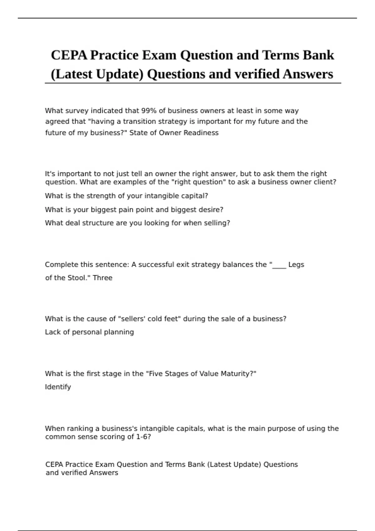 CEPA Practice Exam Question and Terms Bank (Latest Update) Questions