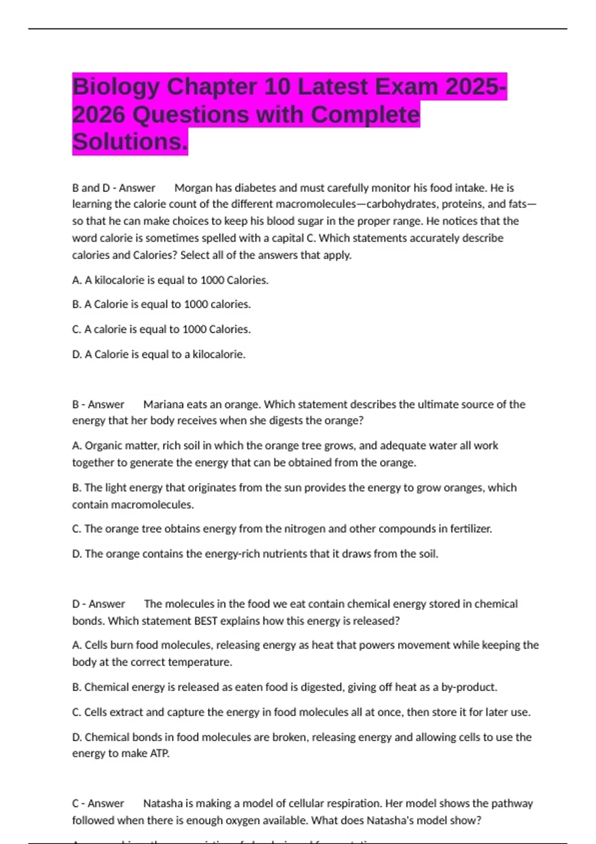 B - Answer Mariana eats an orange. Which statement describes the ultimate source of the