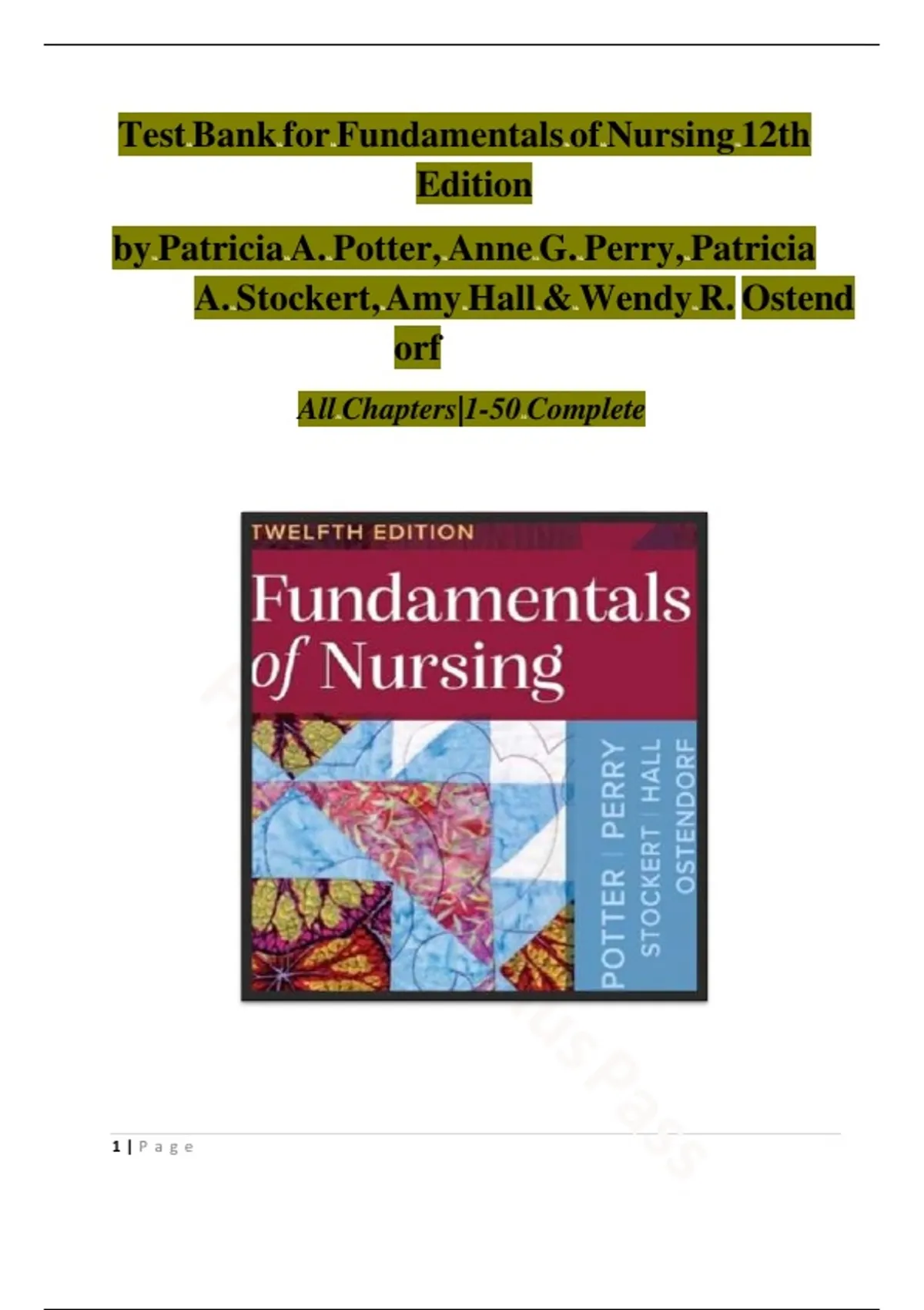 Test Bank for Fundamentals of Nursing 12th Edition – Potter, Perry, Stockert, Hall, Ostendorf | Complete Exam Preparation | Chapters 1–50 | Verified Questions & Answers