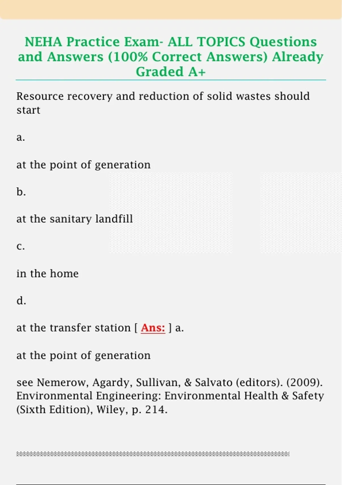 NEHA Practice Exam- ALL TOPICS Questions and Answers (100% Correct Answers) Already Graded A+ NEHA Practice Exam- ALL TOPICS Questions and Answers (100% Correct Answers) Already Graded A+