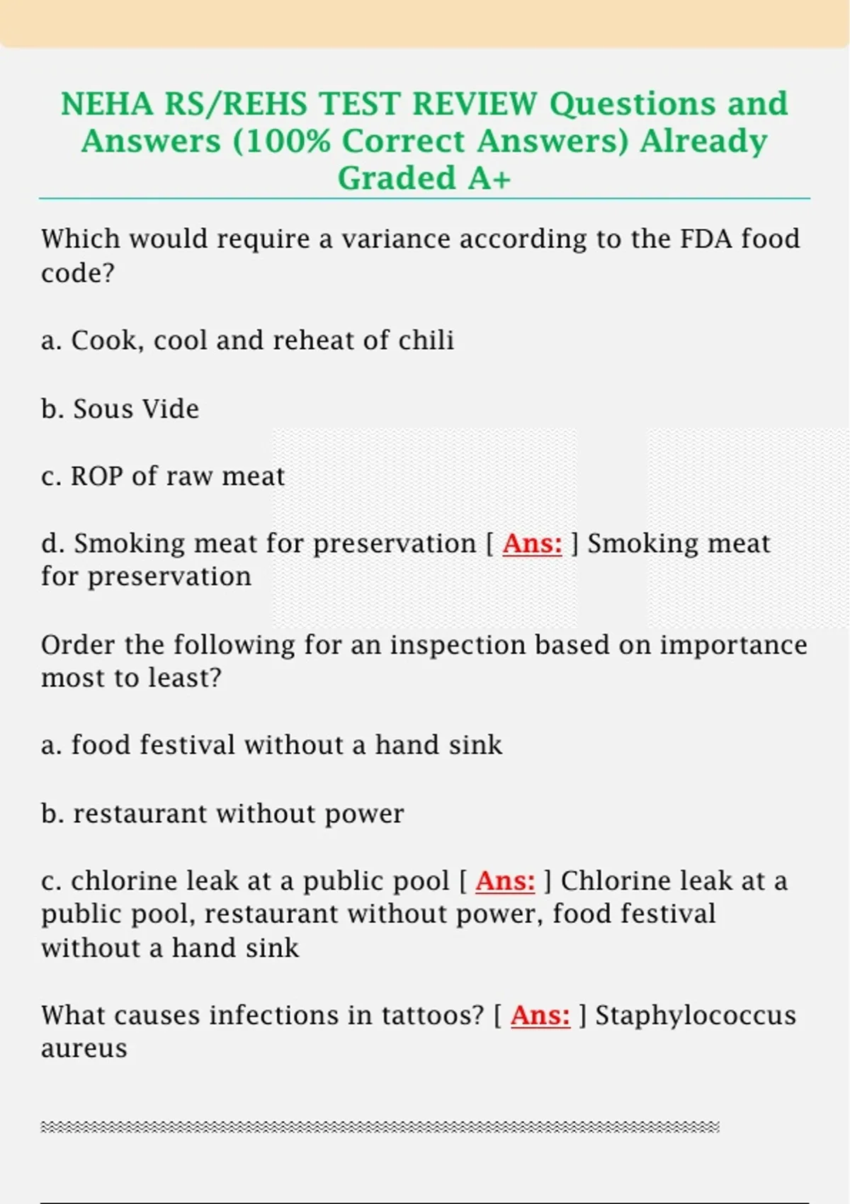 NEHA RS/REHS TEST REVIEW Questions and Answers (100% Correct Answers) Already Graded A+ NEHA RS/REHS TEST REVIEW Questions and Answers (100% Correct Answers) Already Graded A+