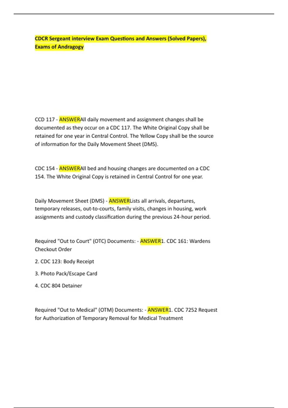 CDCR Sergeant interview Exam Questions and Answers (Solved Papers),