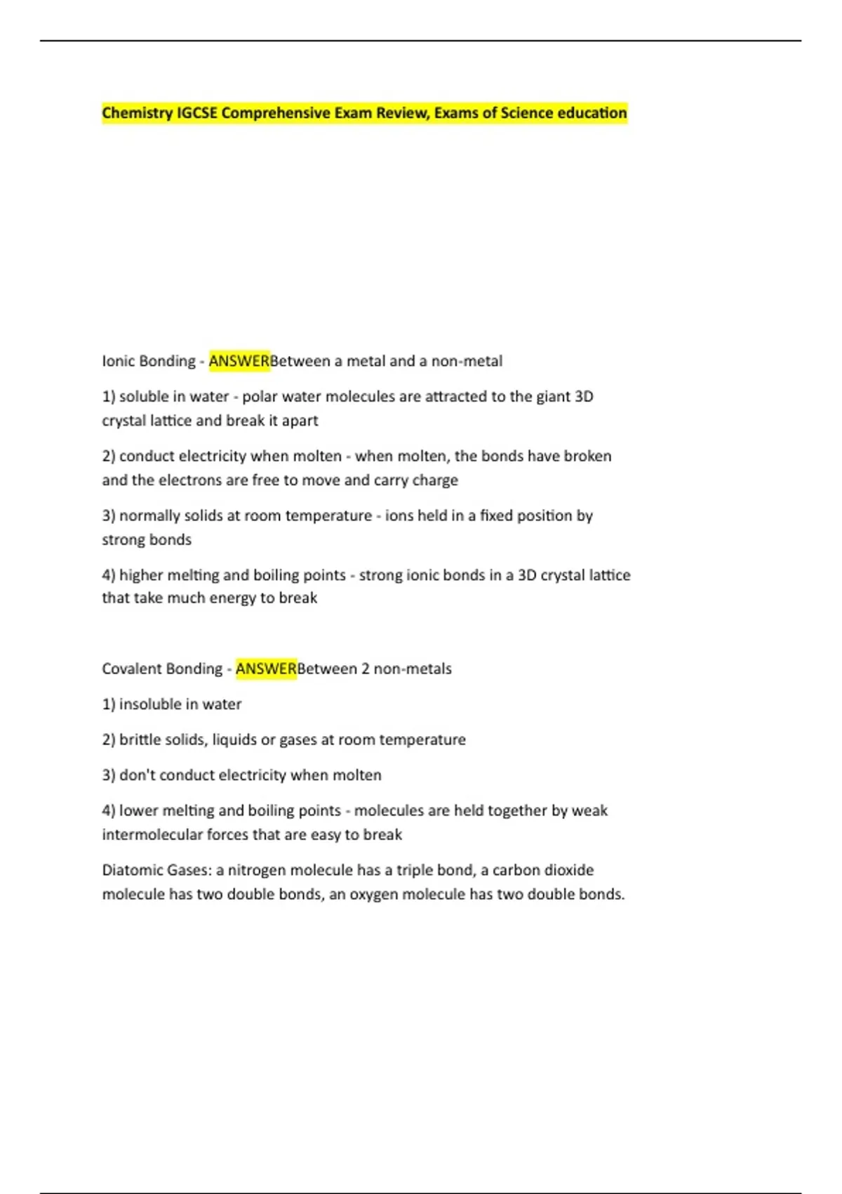 Chemistry IGCSE Comprehensive Exam Review, Exams of Science education