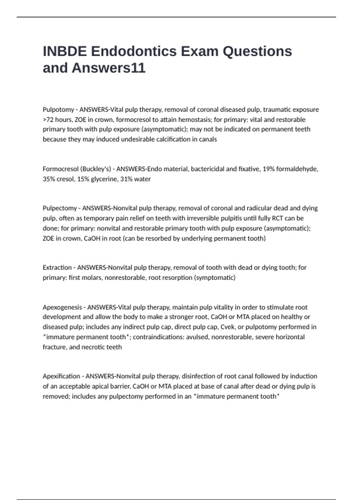 Pulpectomy - ANSWERS-Nonvital pulp therapy, removal of coronal and radicular dead and dying