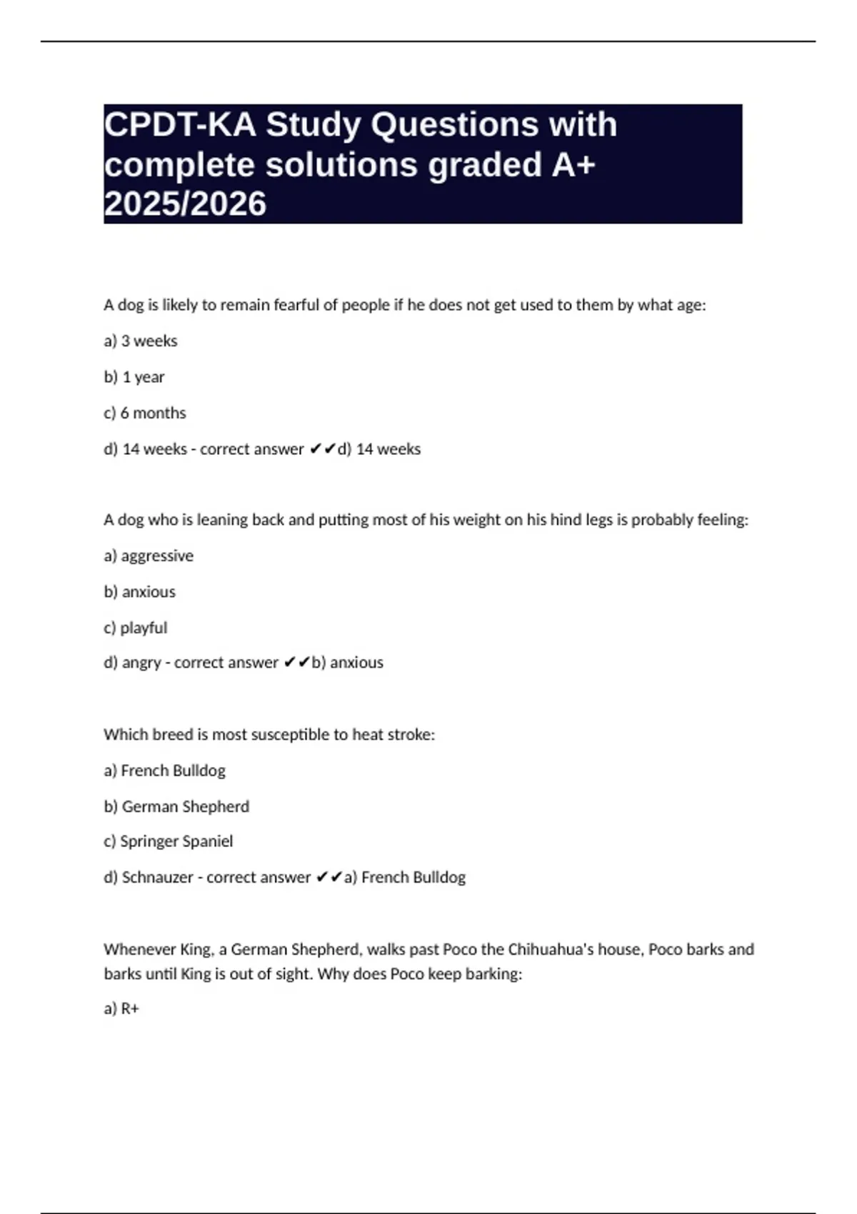 CPDT-KA Study Questions with
