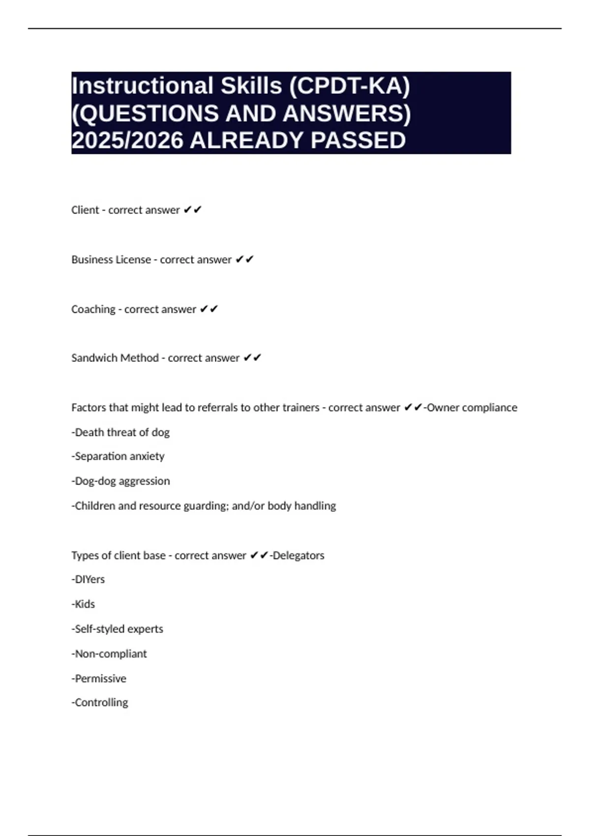 Instructional Skills (CPDT-KA) (QUESTIONS AND ANSWERS) 2025/2026 ALREADY PASSED