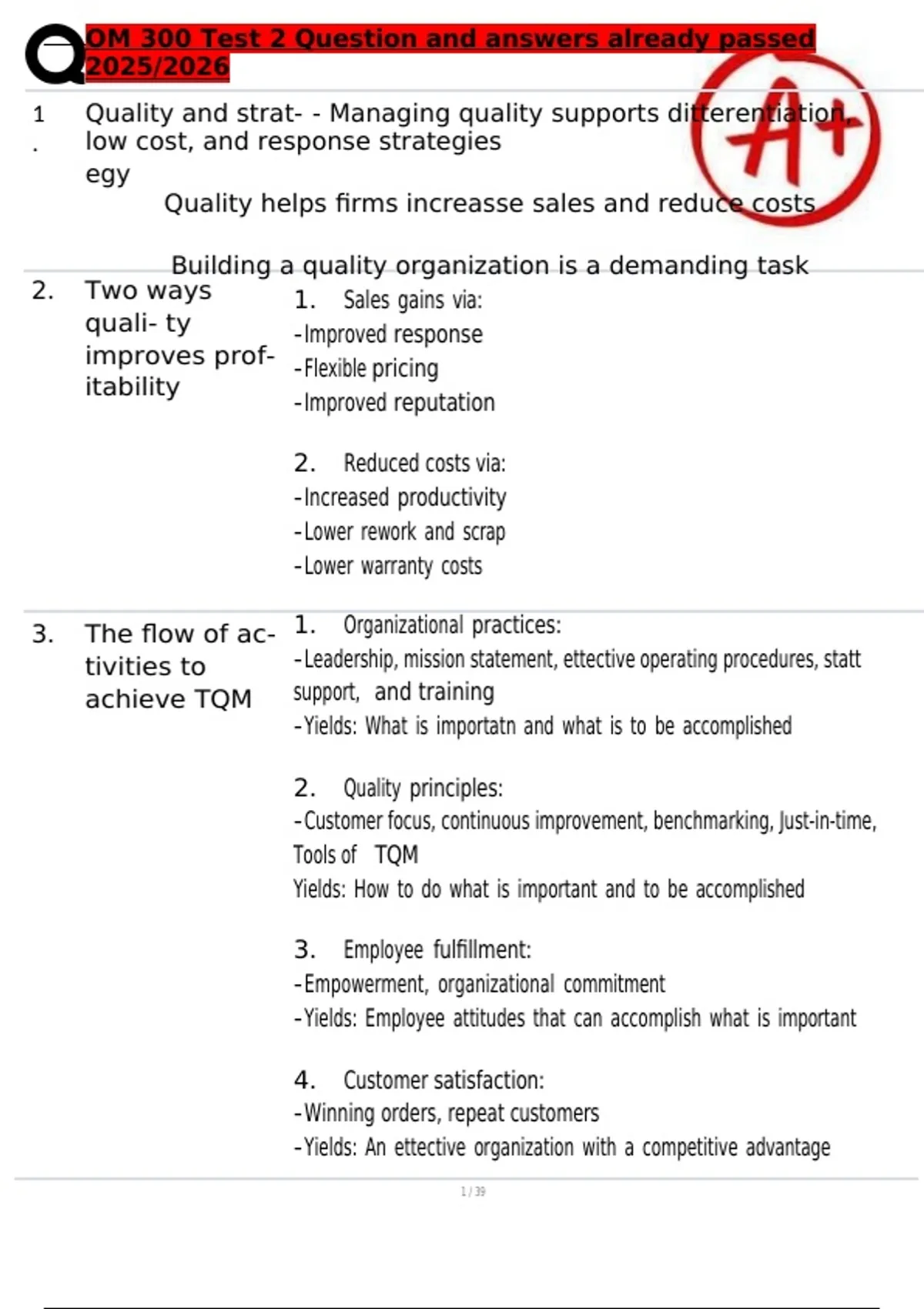 OM 300 Test 2 Question and answers already passed 2025/2026