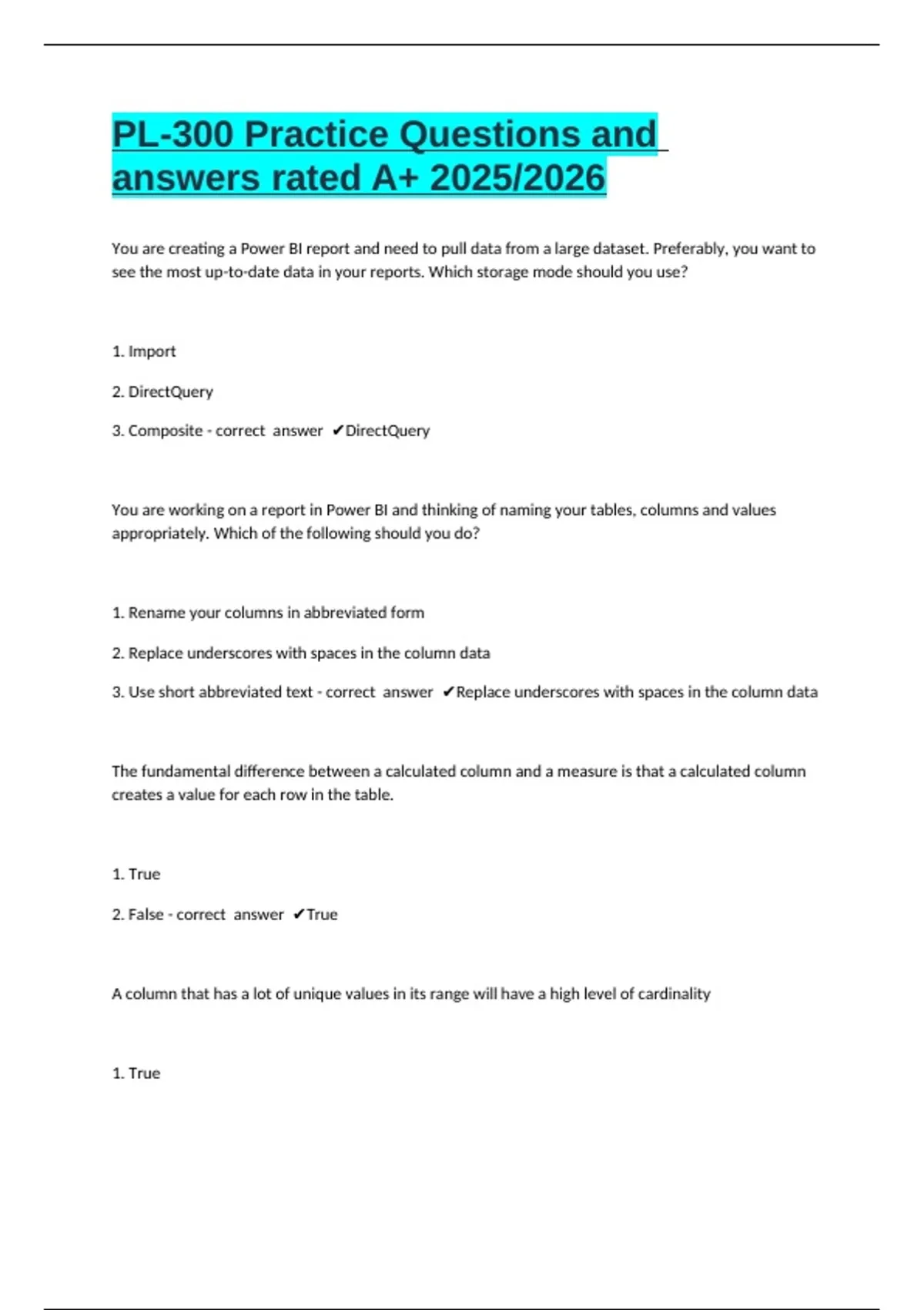 3. Composite - correct answer ✔DirectQuery
