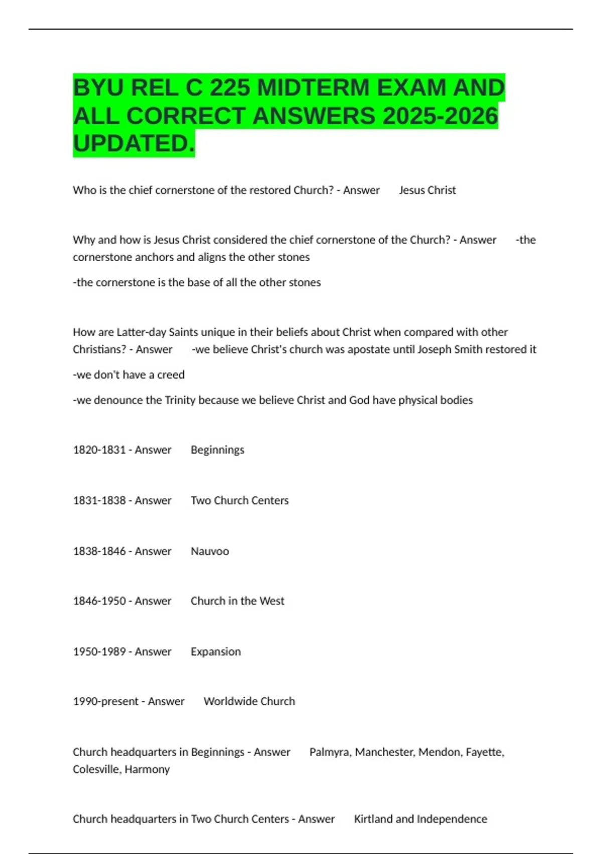 BYU REL C 225 MIDTERM EXAM AND ALL CORRECT ANSWERS UPDATED.