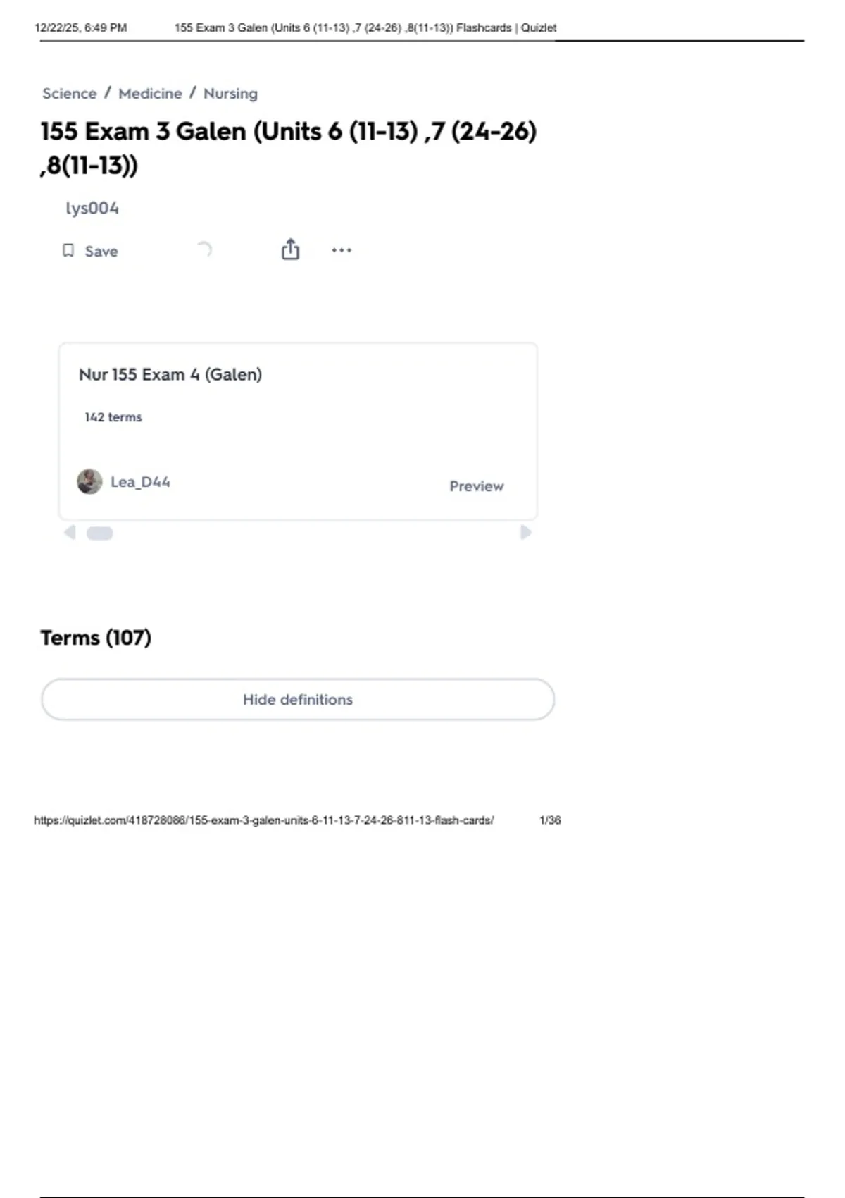 ,12/22/25, 6:49 PM 155 Exam 3 Galen (Units 6 (11-13) ,7 (24-26) ,8(11-13)) Flashcards | Quizlet