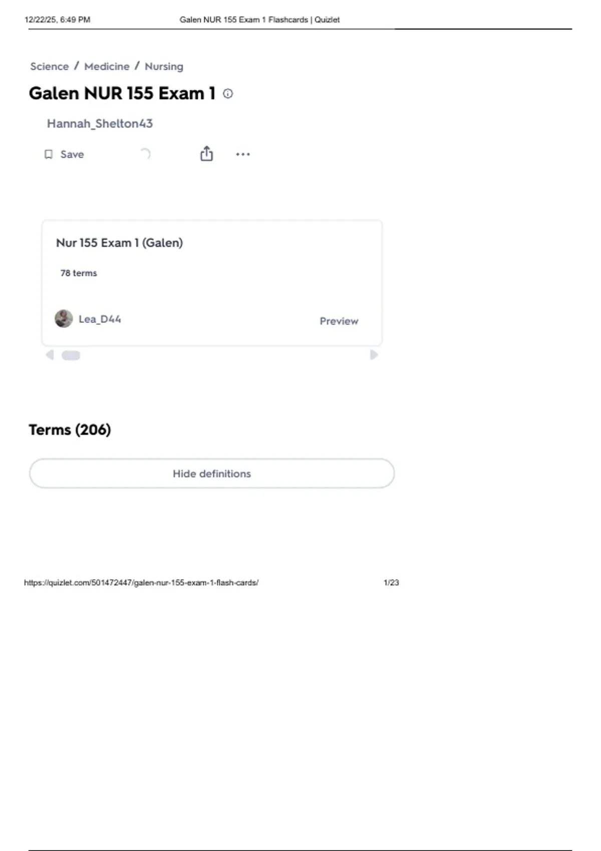 ,12/22/25, 6:49 PM Galen NUR 155 Exam 1 Flashcards | Quizlet
