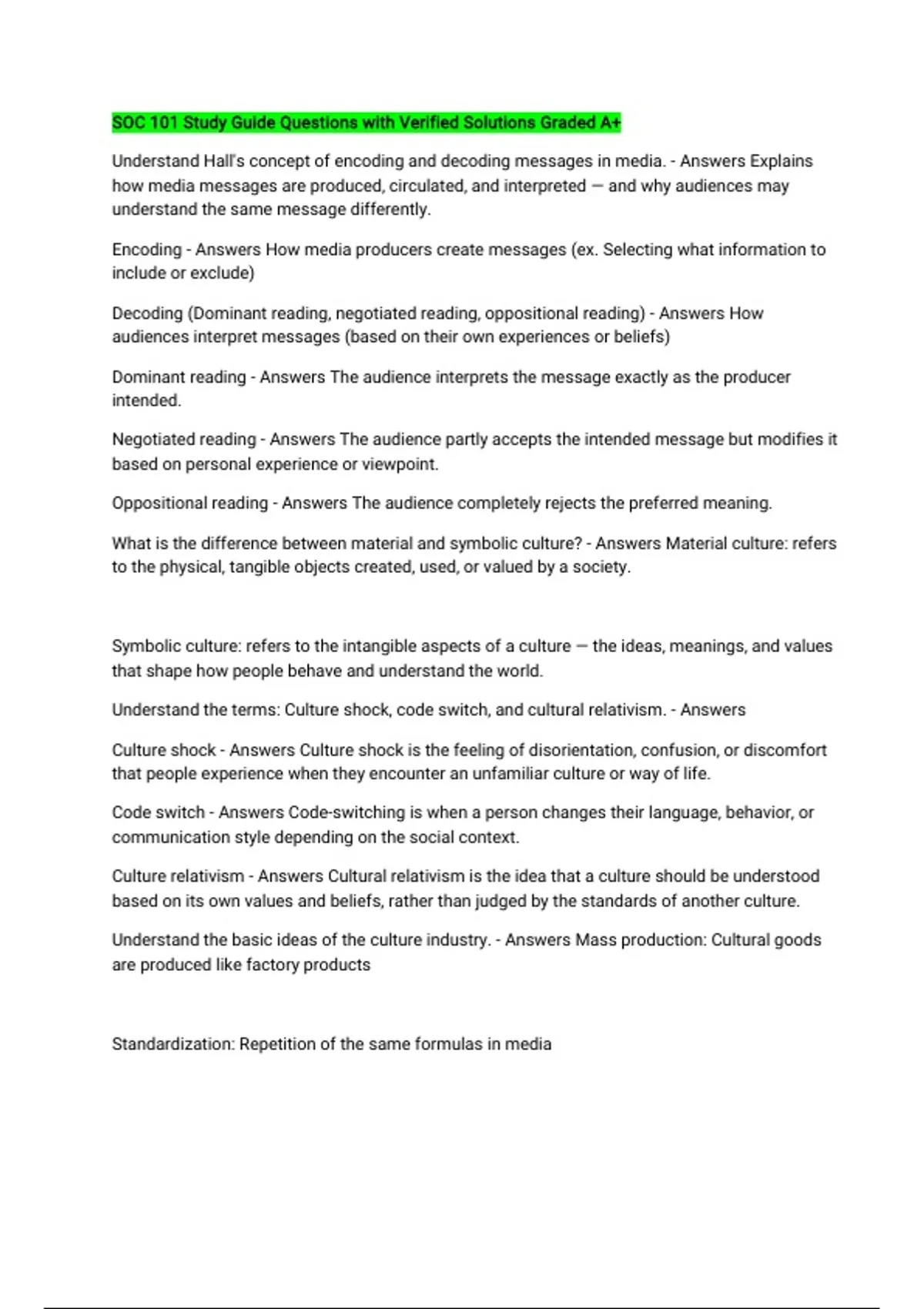 Dominant reading - Answers The audience interprets the message exactly as the producer
