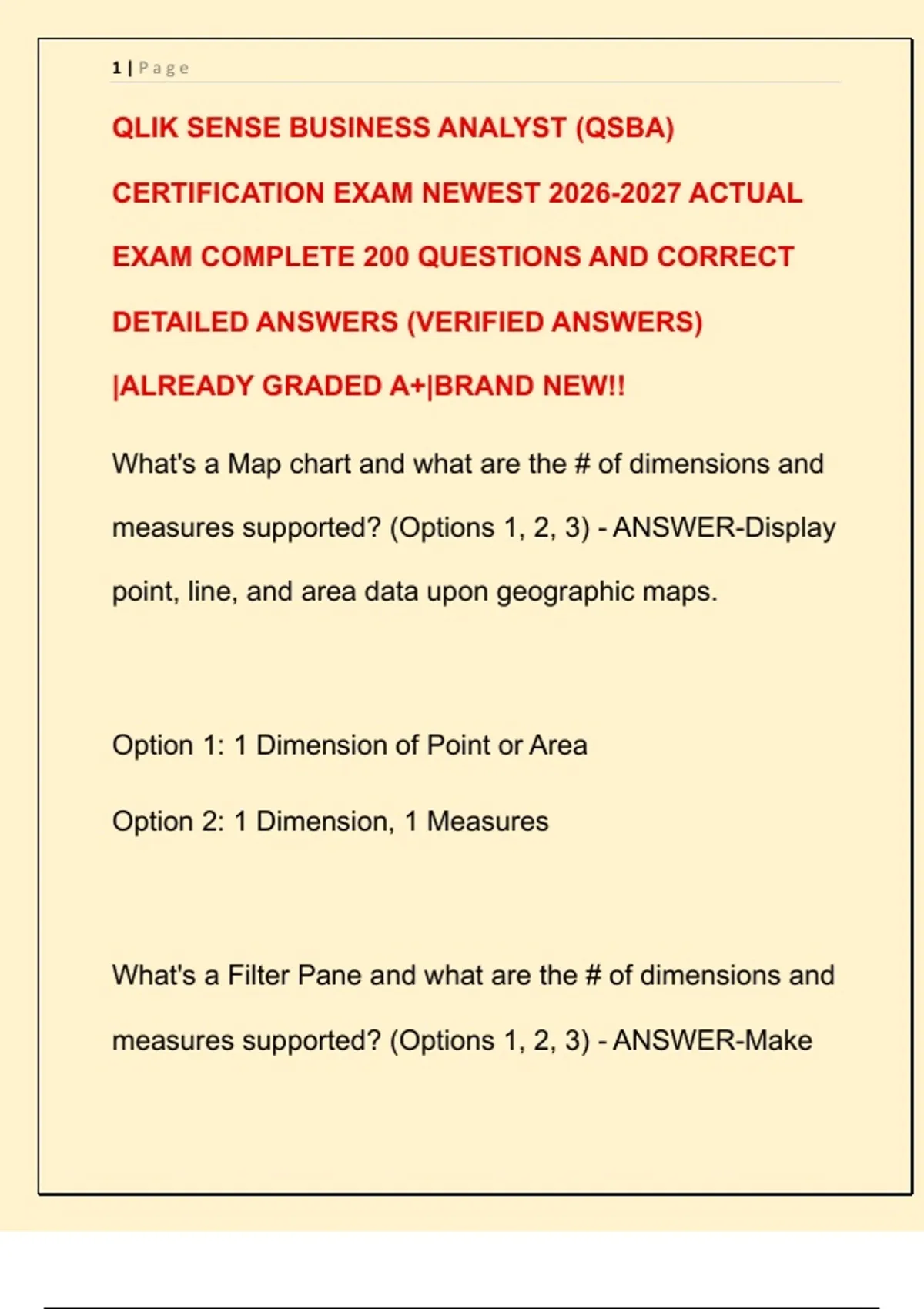 QLIK SENSE BUSINESS ANALYST (QSBA) CERTIFICATION EXAM NEWEST ACTUAL EXAM COMPLETE 200 QUESTIONS AND CORRECT DETAILED ANSWERS (VERIFIED ANSWERS) |ALREADY GRADED A+|BRAND NEW!!