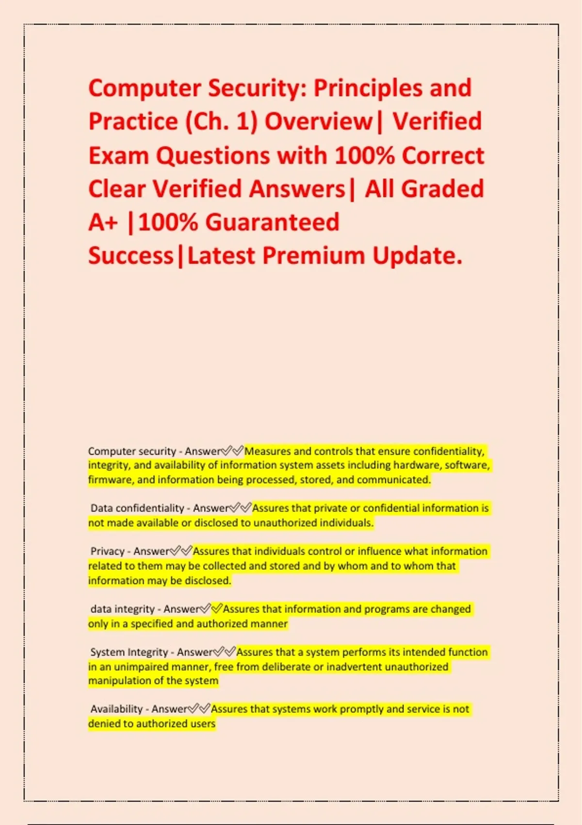 Computer security - Answer✅✅Measures and controls that ensure confidentiality,