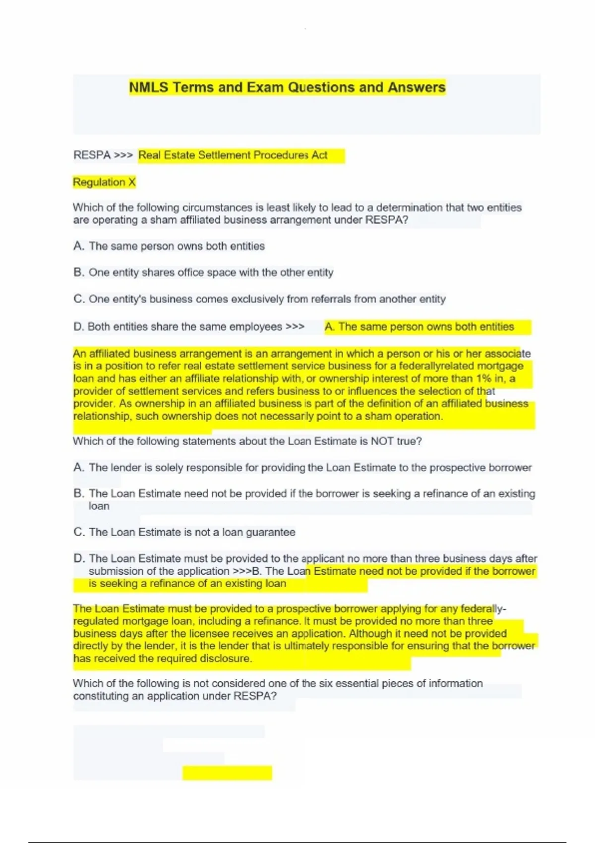 NMLS Terms and Exam Questions and AnswersNMLS Terms and Exam Questions and Answers