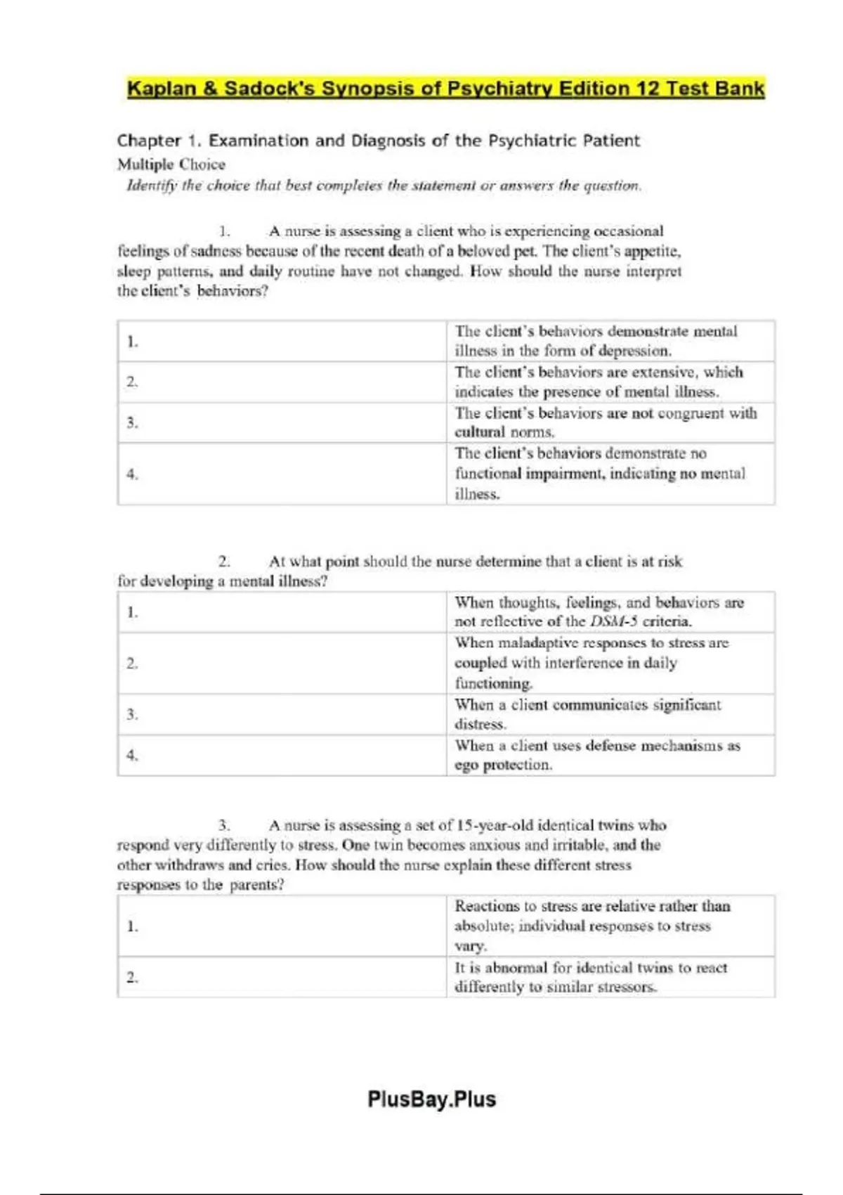 Kaplan & Sadock's Synopsis of Psychiatry Edition 12 Test BankKaplan & Sadock's Synopsis of Psychiatry Edition 12 Test Bank