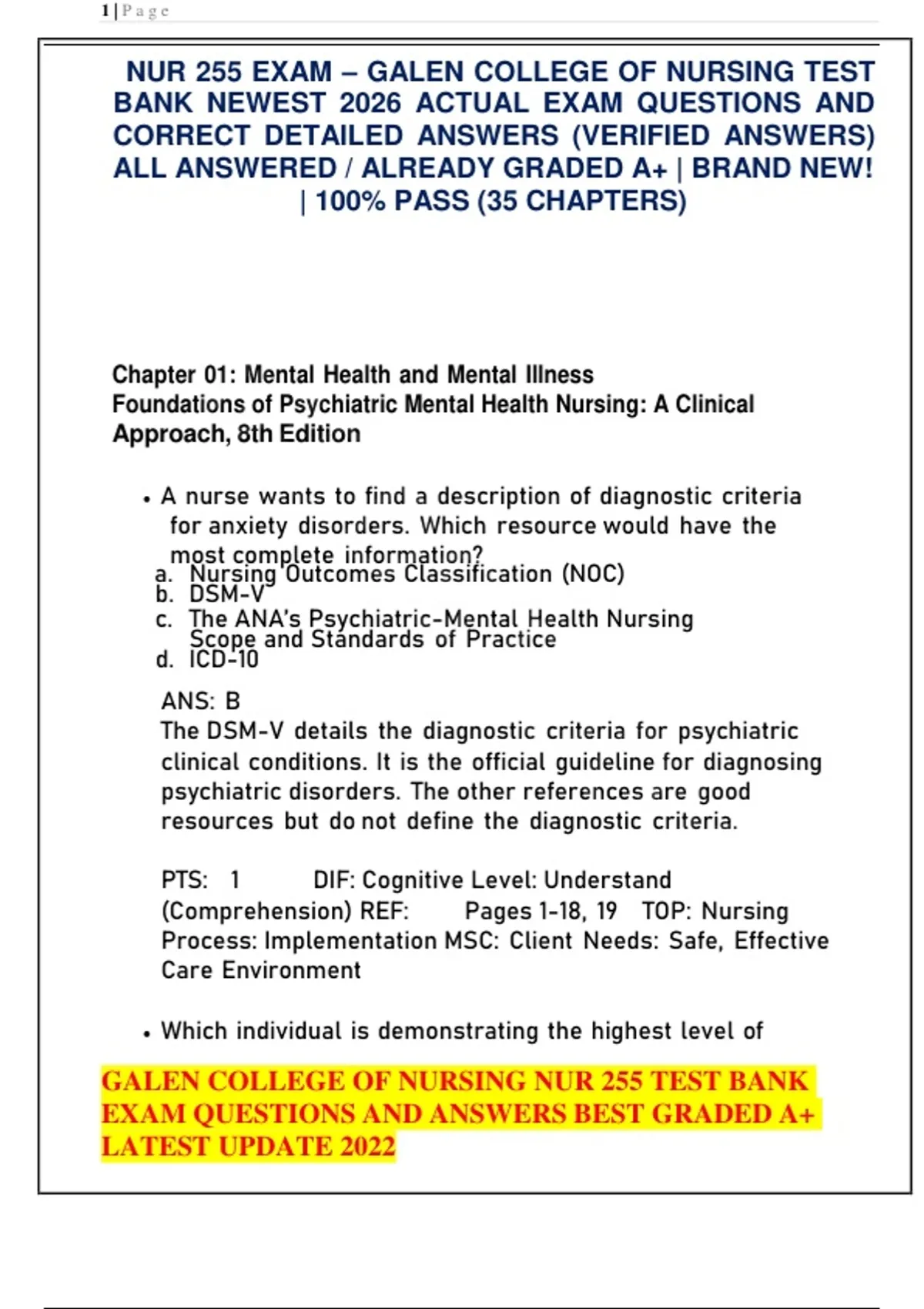 , GALEN COLLEGE OF NURSING NUR 255 TEST BANK