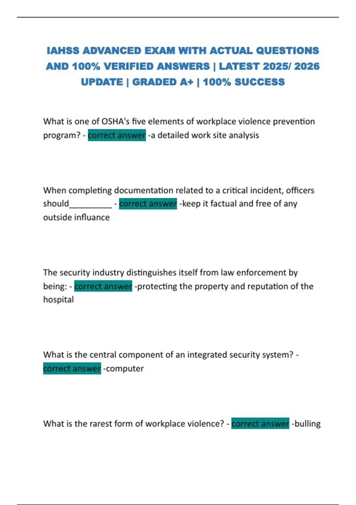 IAHSS ADVANCED EXAM WITH ACTUAL QUESTIONS AND 100% VERIFIED ANSWERS | LATEST 2025/ 2026 UPDATE | GRADED A+ | 100% SUCCESS