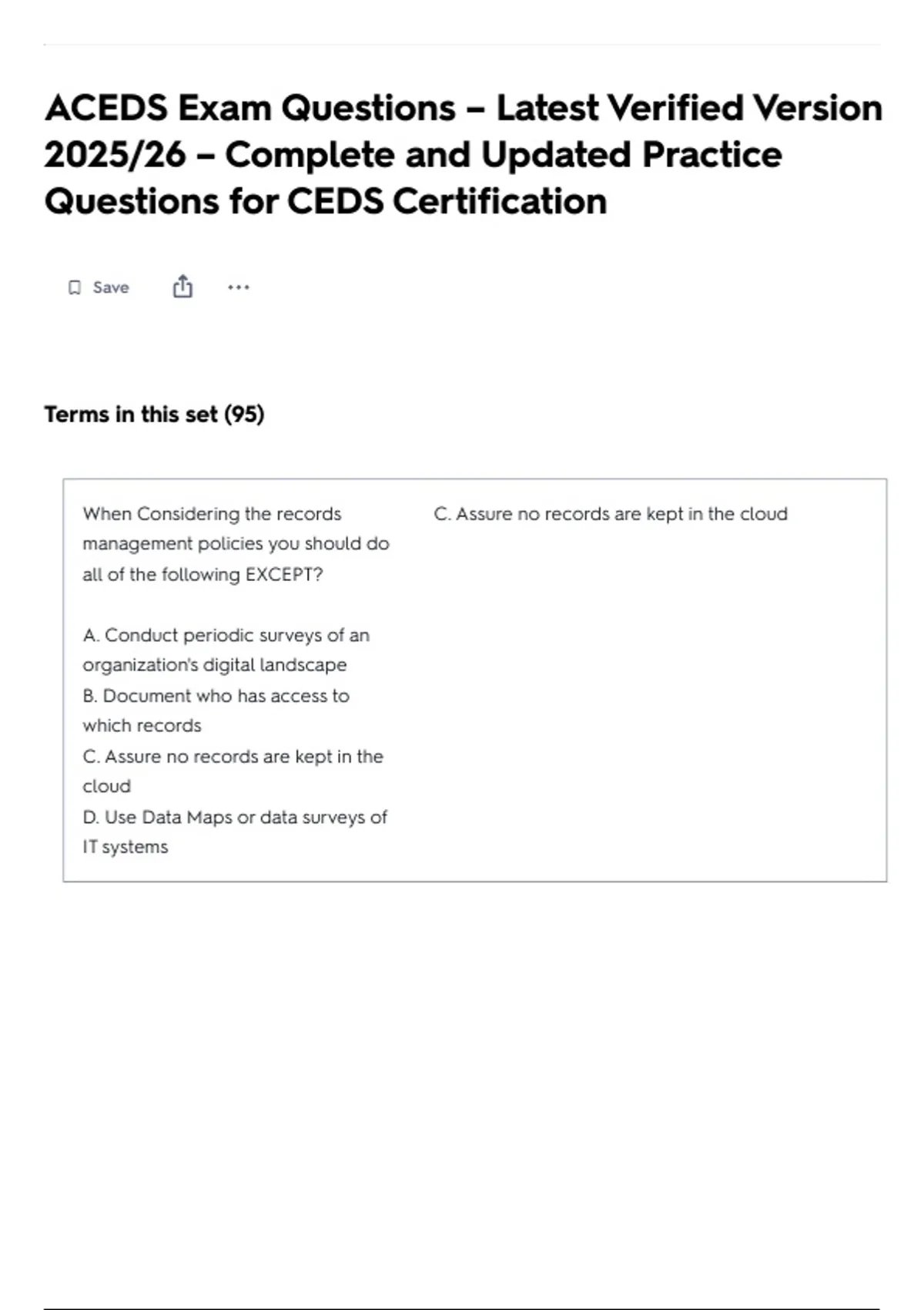 ACEDS Exam Questions – Latest Verified Version 2025/26 – Complete and Updated Practice Questions for CEDS Certification