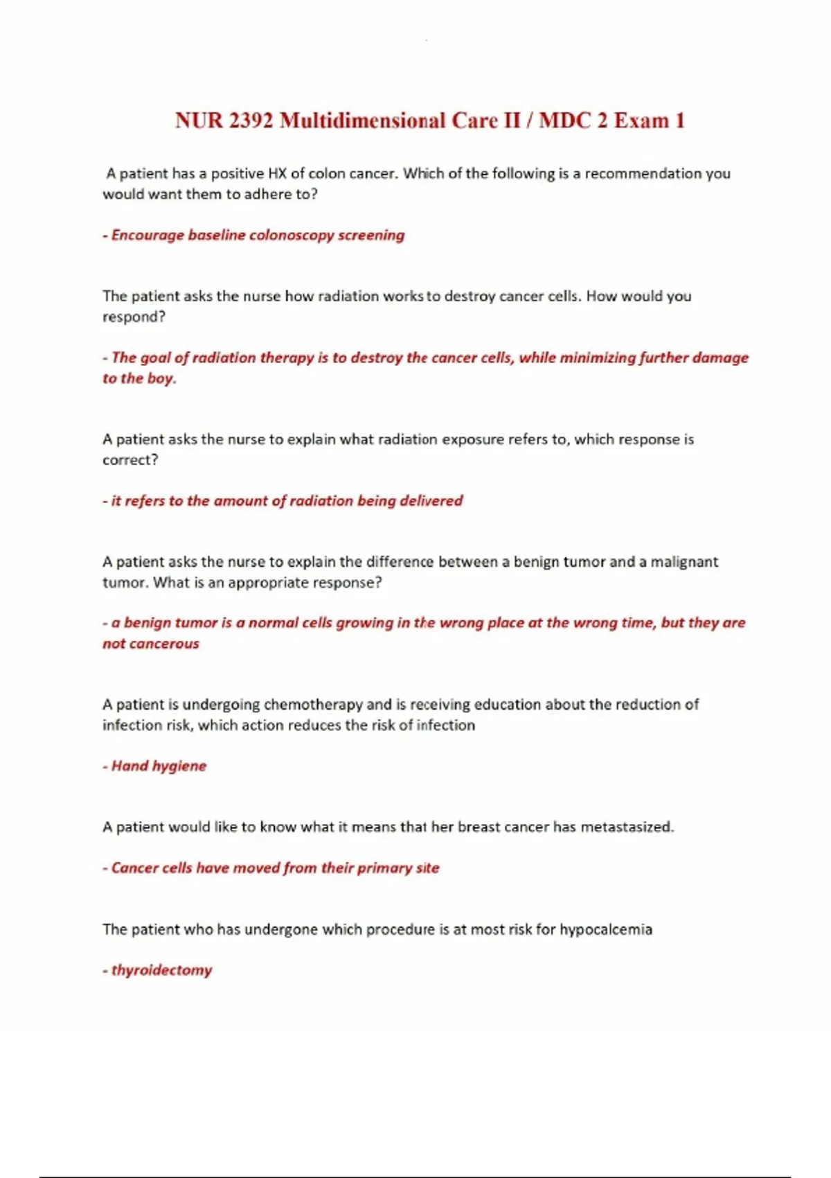 NUR 2392 Multidimensional Care II MDC 2 Exam 1 Quiz Questions and Answers.NUR 2392 Multidimensional Care II MDC 2 Exam 1 Quiz Questions and Answers.