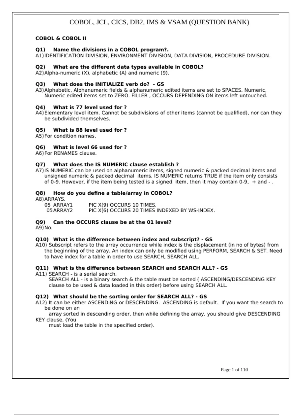 MAINFRAME ( COBOL, JCL, CICS, DB2, IMS & VSAM) QUESTIONS BANK WITH VERIFIED ANSWERS.