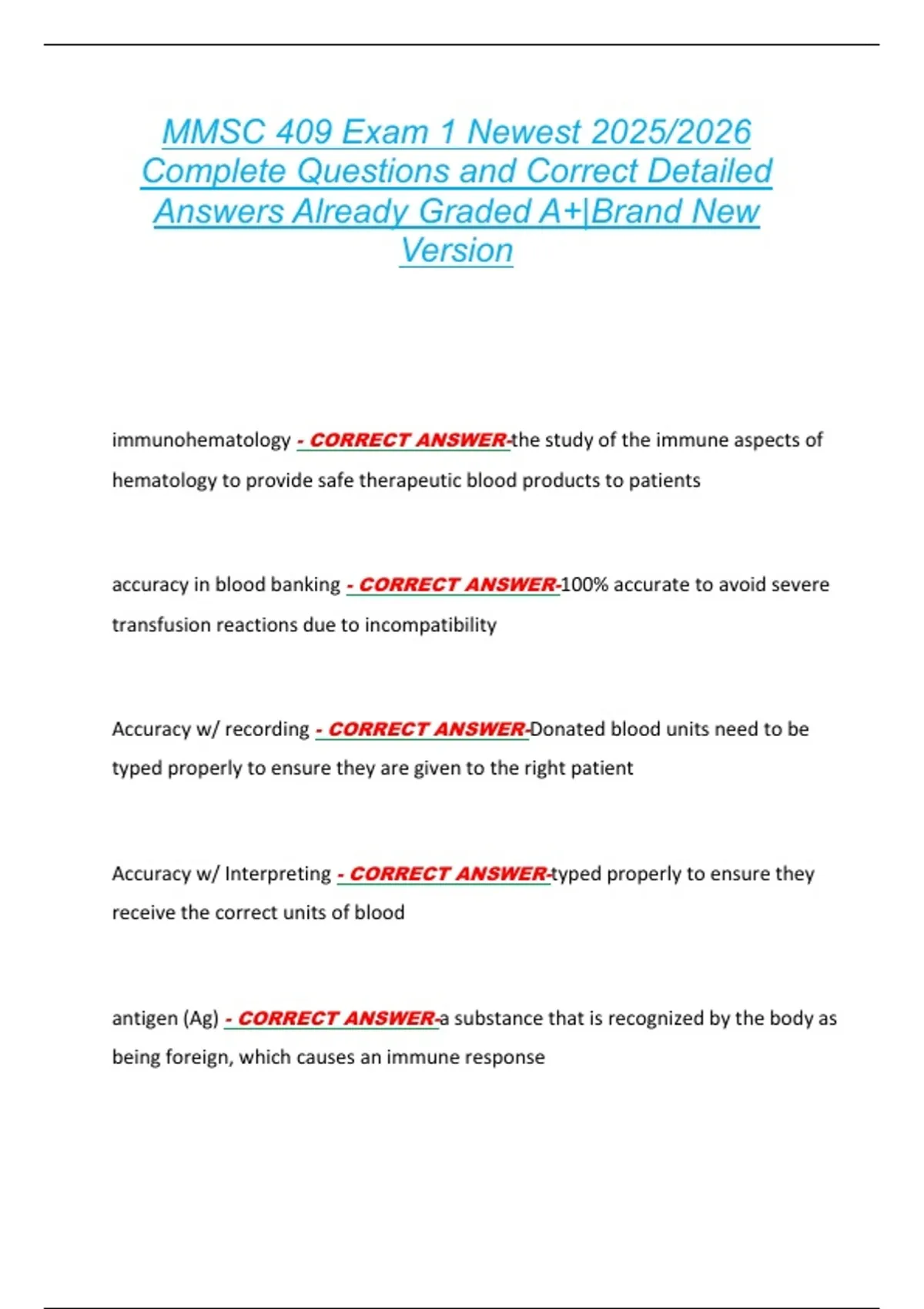 accuracy in blood banking - CORRECT ANSWER-100% accurate to avoid severe